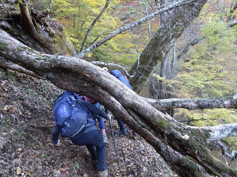 2日間とも良い天気に恵まれ秋の景色を思う存分に楽しめた山行になりました。リーダーから事前に工程表を頂いてその通りに皆足並みが揃って、長い時間でしたが青空と黄金色の山々に癒され疲れを忘れて下山できました。三条の湯では柔らかな湯につかり、大広間でゆっくりくつろぎ楽しい時間でした。皆さまお世話になりました。