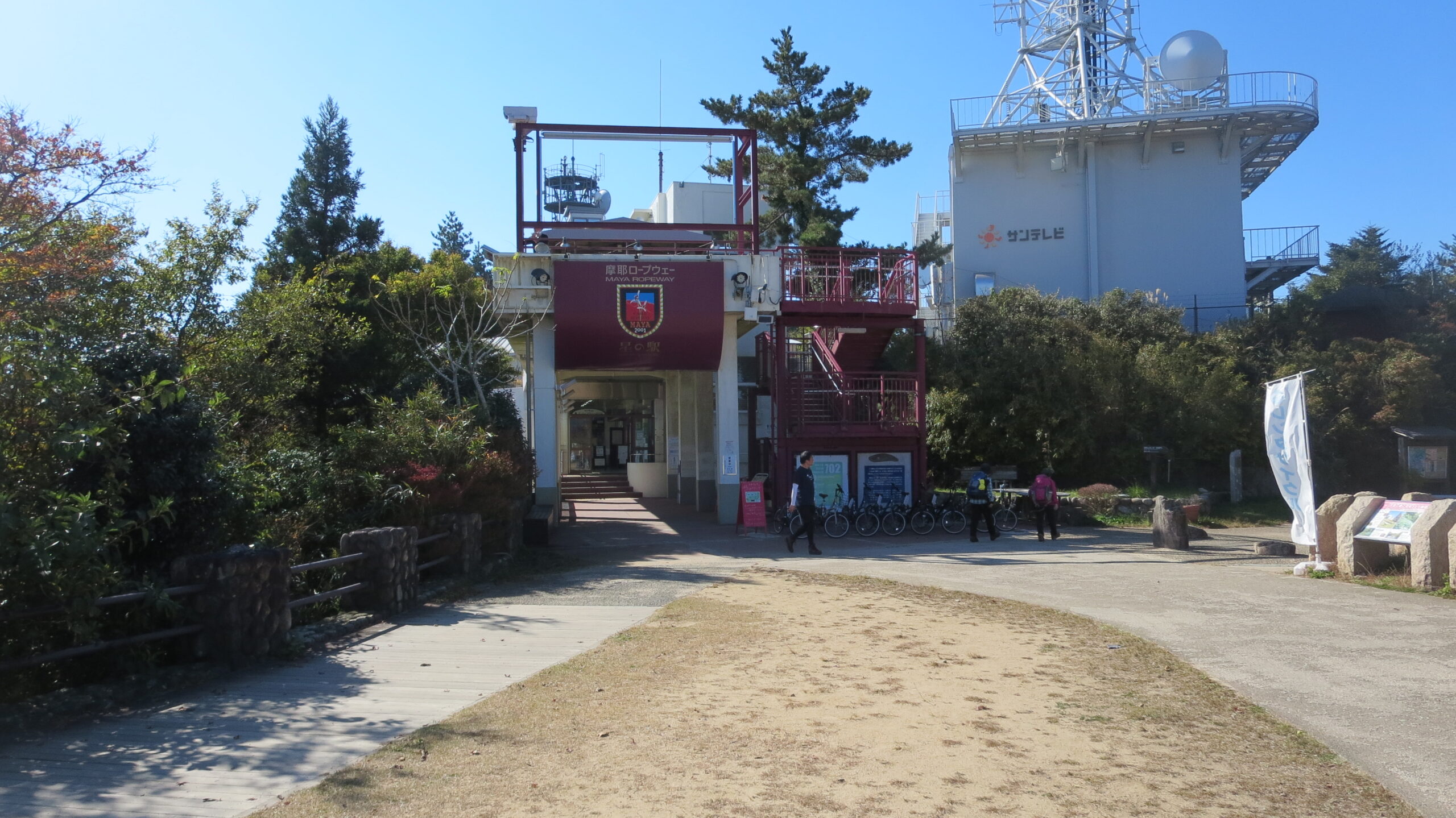 掬星台広場。正面はロープウェイ終点駅。 摩耶山山頂の鳥居。