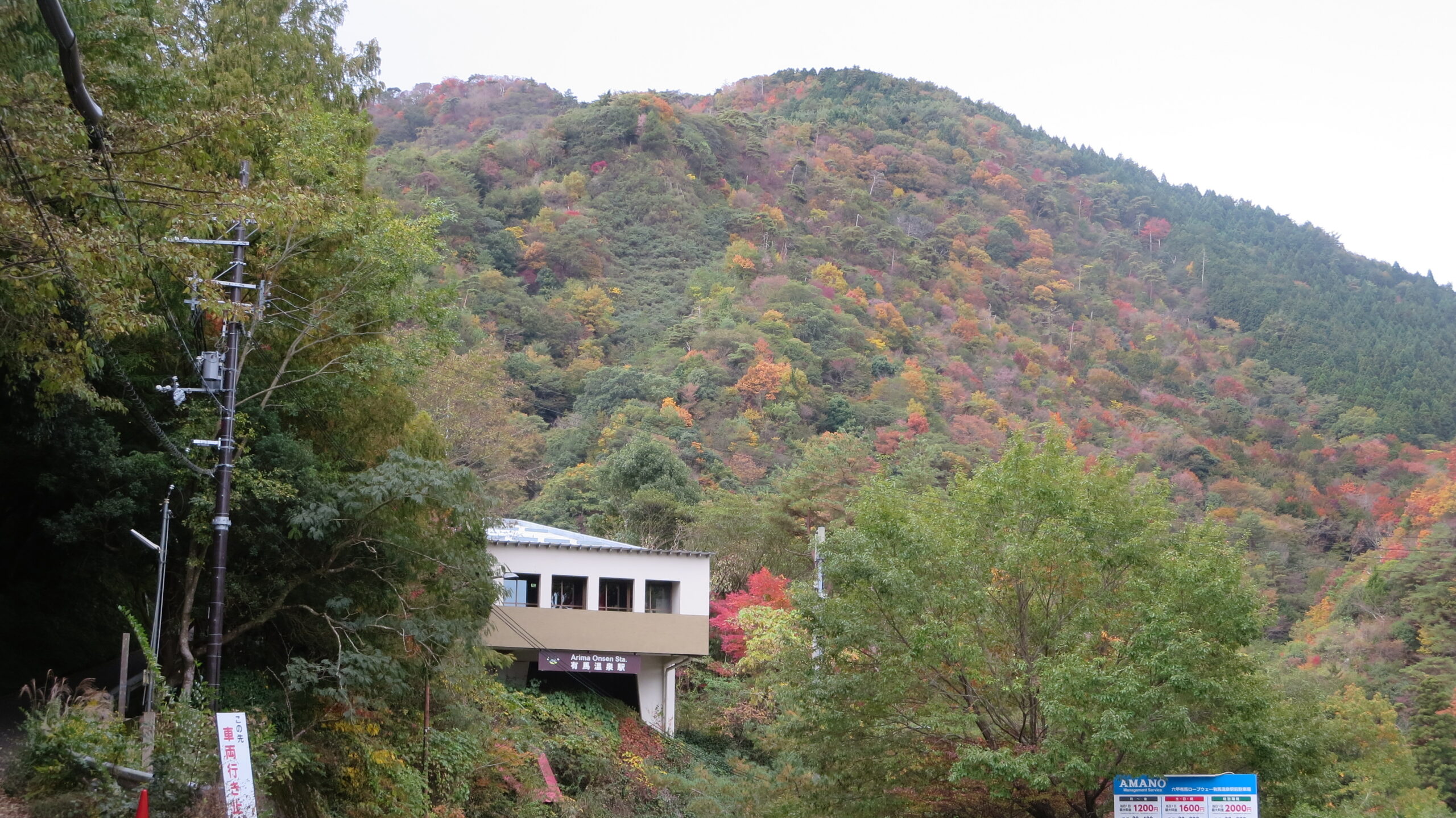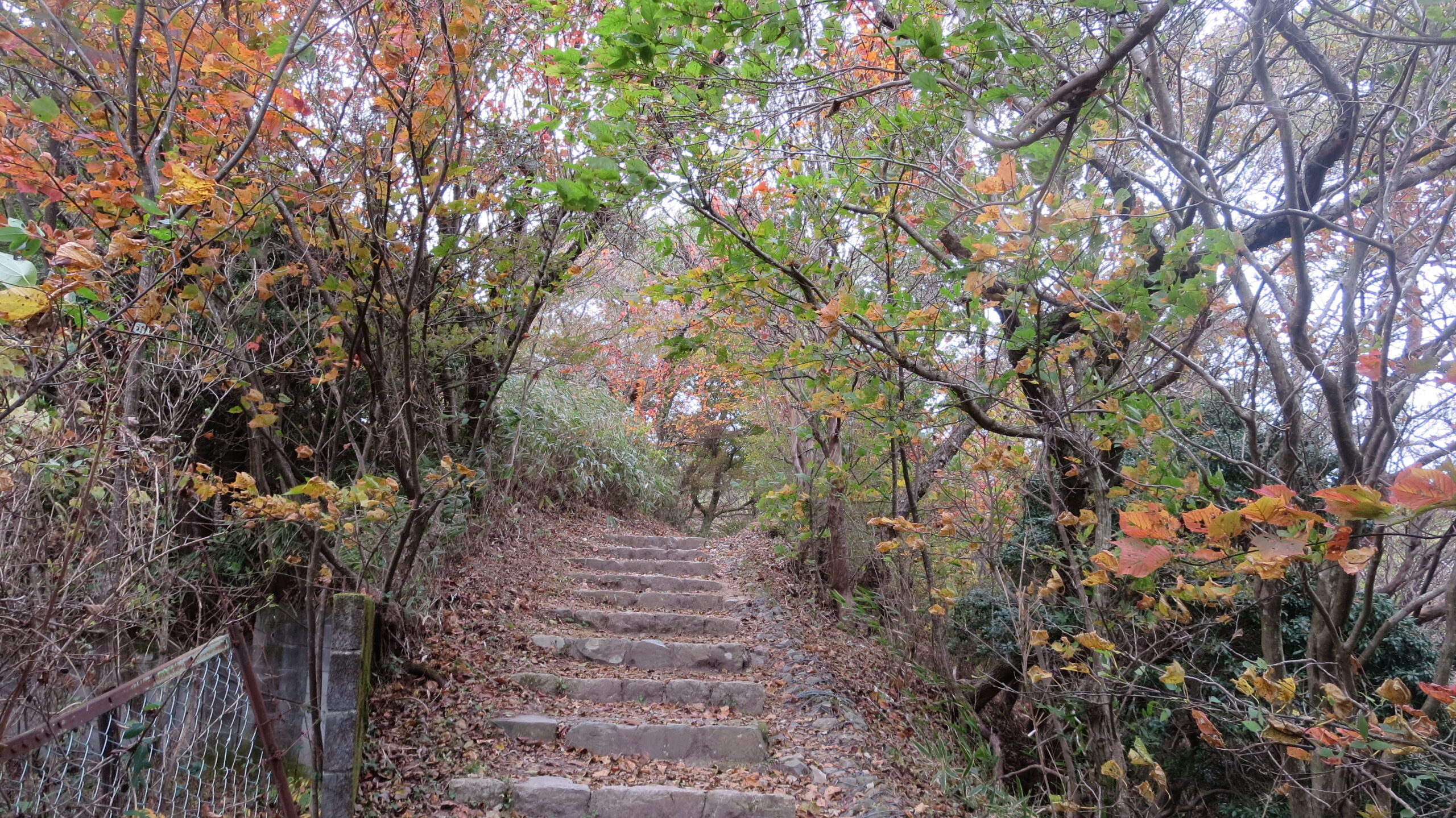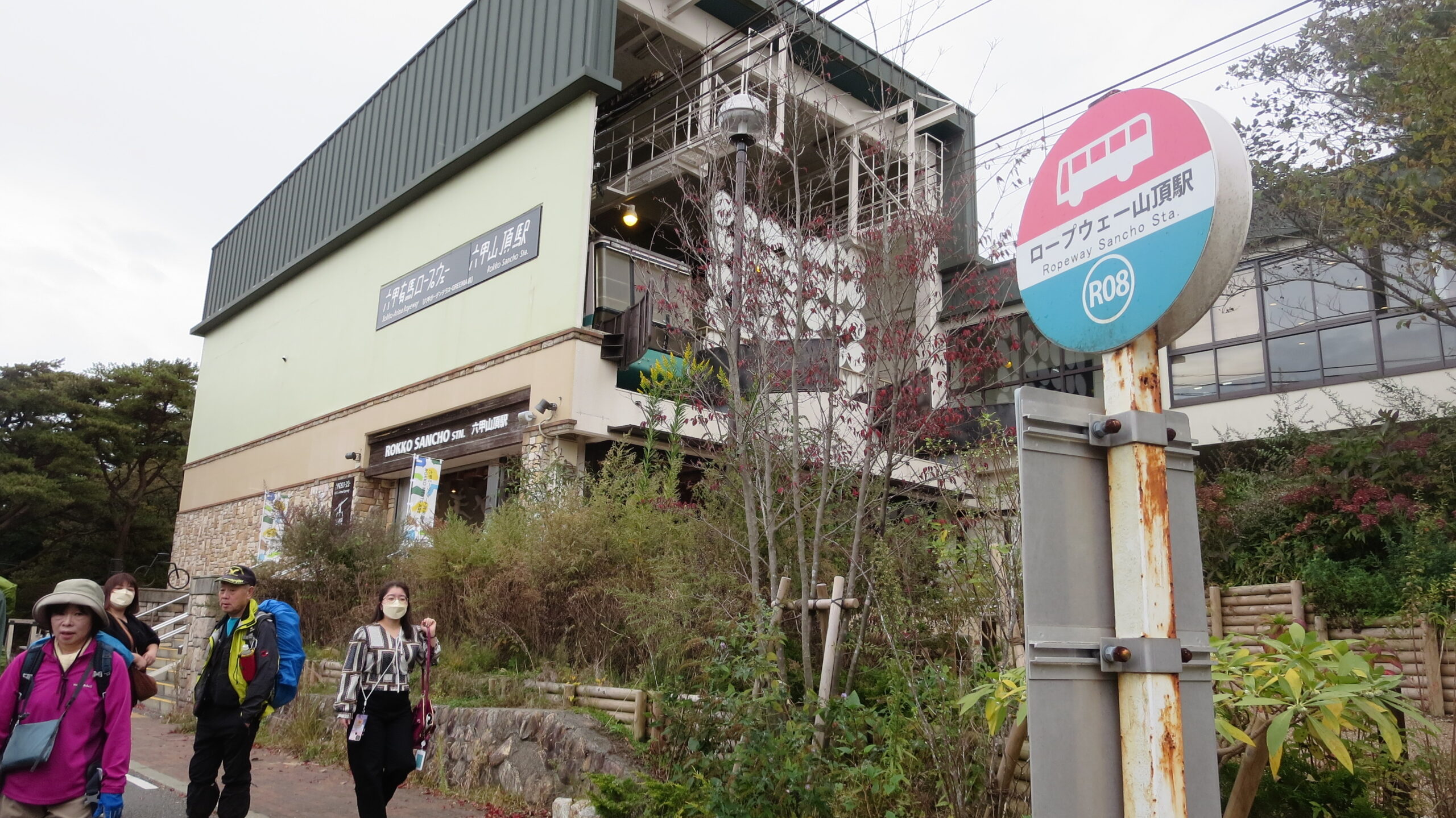 上り下りは全て階段。やがて舗装された一般道路を歩き「六甲ガーデンテラス」を経て「六甲有馬ロープウェイ」で今夜の宿・有馬温泉へ