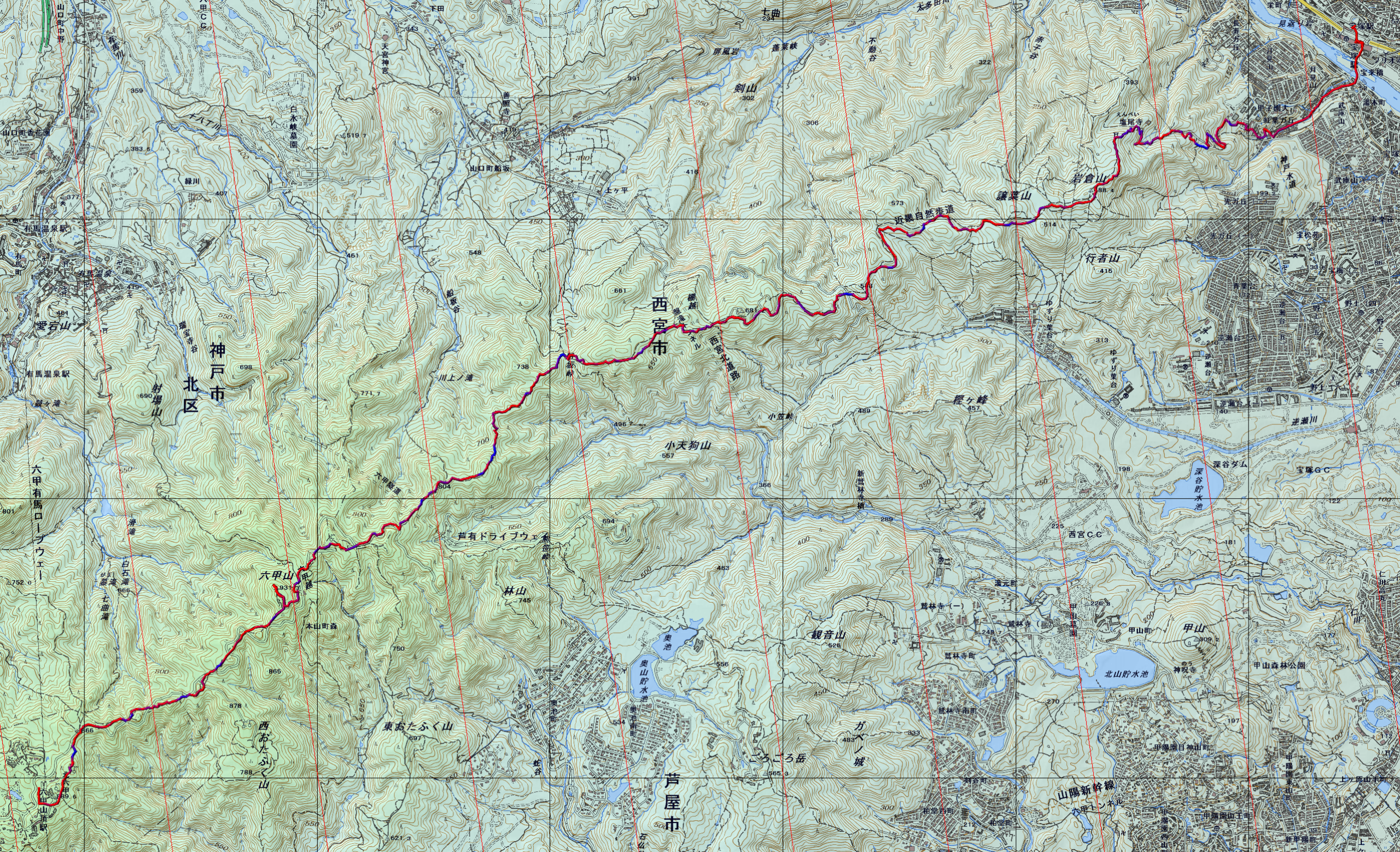 六甲有馬ロープウェイ山頂駅~宝塚駅 15.7Km