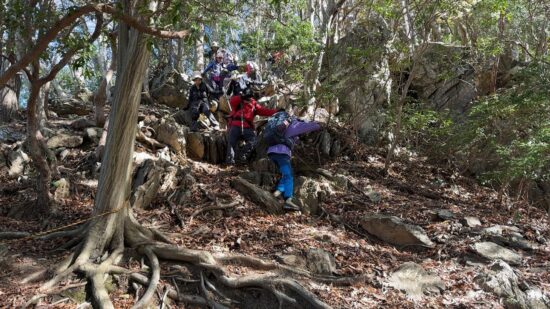 一方で、今回の2つの峰を持つ二子山は距離は6Kmと短かったのですが、岩場やロープ場が数ヶ所あって、それなりに楽しめたのではと思います。