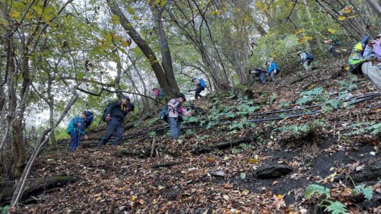 また、当初は沢筋の道を登ろうと計画をしていましたが、4日に同じコースの山行があったので急遽、尾根道に変更しました。登った経験のある他のリーダーのアドバイスやヤマレコを頼りになんとか迷わずに登ることが出来ました。参加者、協力者、参加リーダーの皆さん、ご協力ありがとうございました。