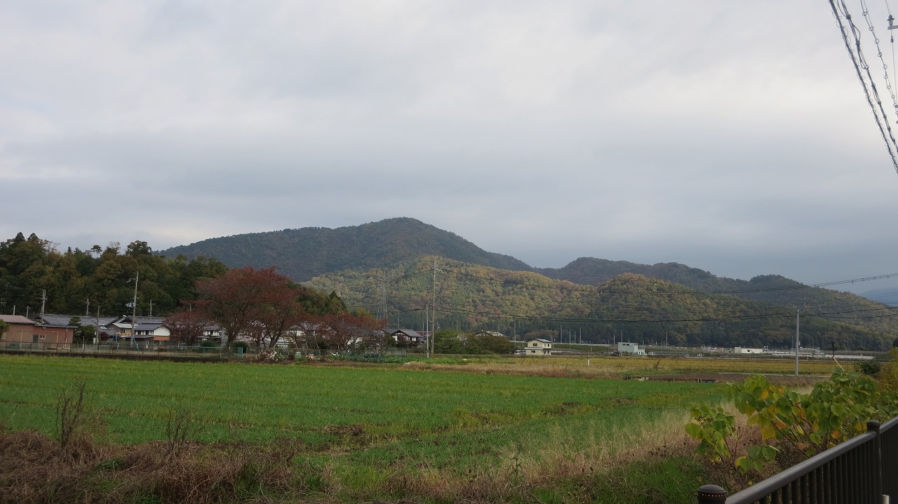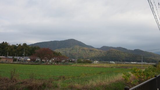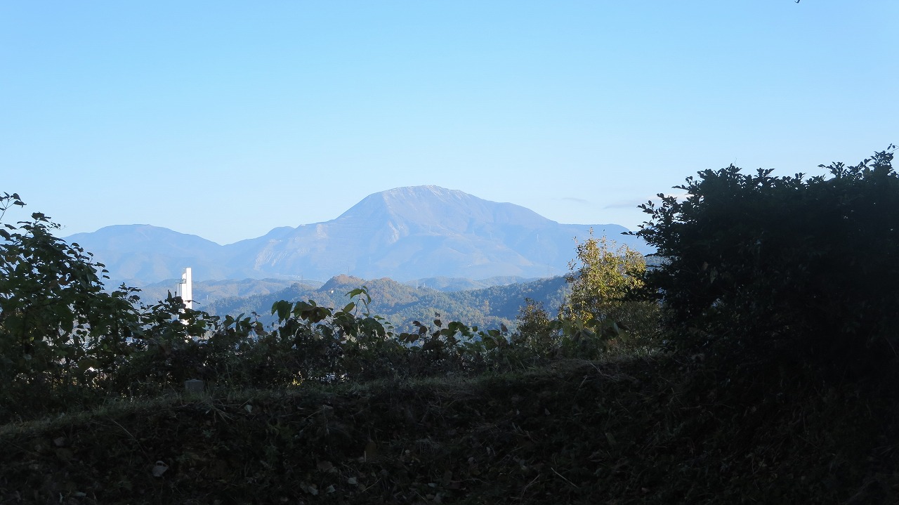 登山口へ向かう目に「小谷山」が。中央の小谷山から右方の稜線を下る。