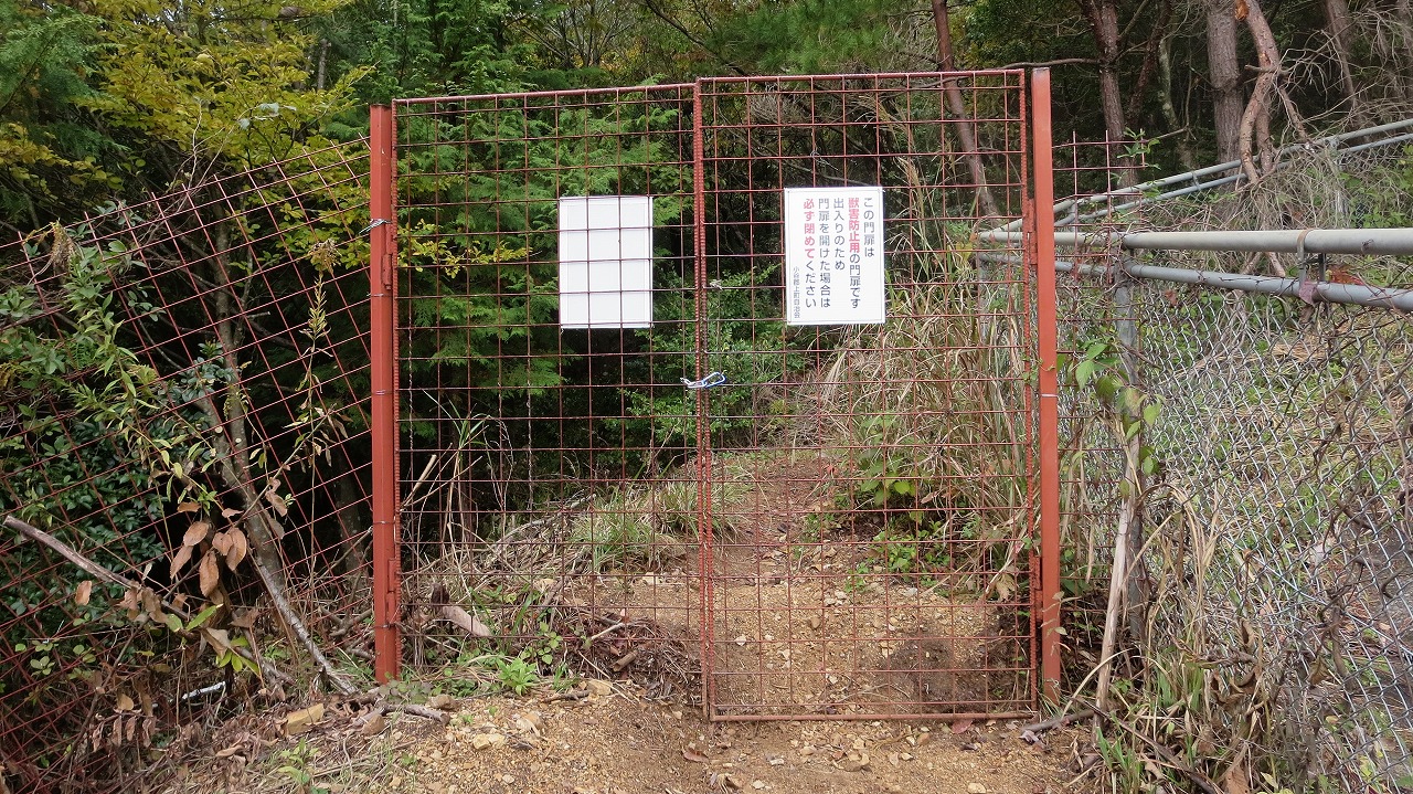 登山口は「清水神社」の鳥居をから始まる 歩道が切れて「獣害防止ネット」から入山