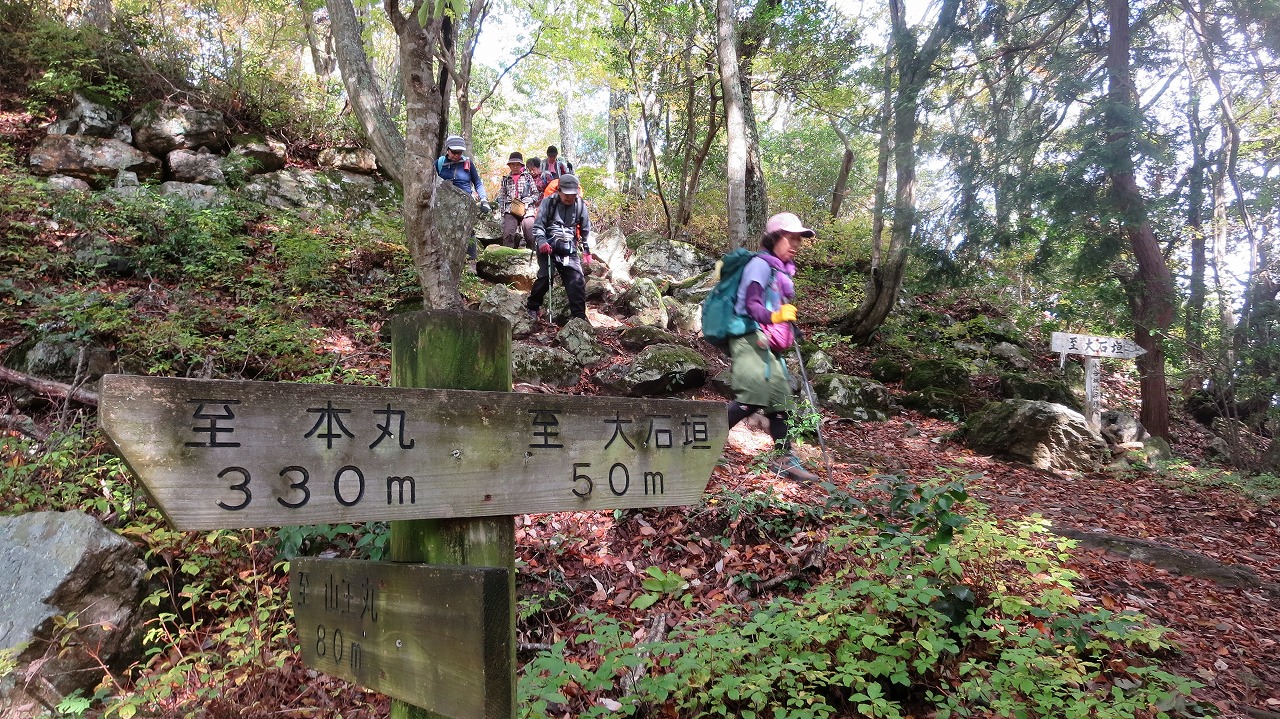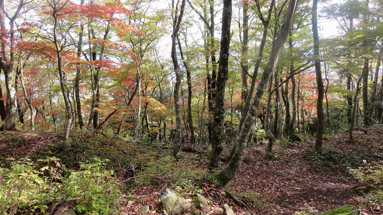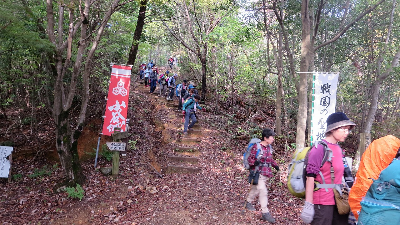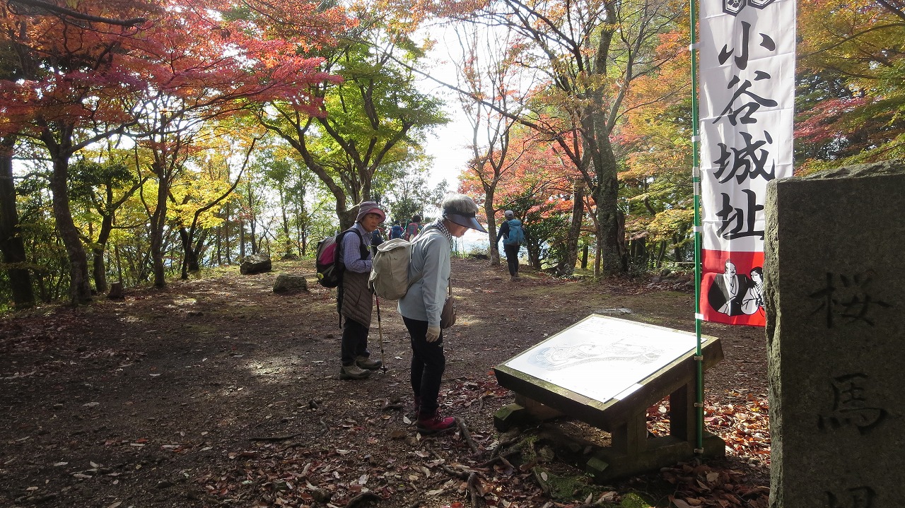 三日間の快晴を期待したがそうはいかなかった。反面、紅葉は期待通りで胸をなでおろした山行でした。一日目:「小谷山」は歴史の重みを感じる歩きでした。諸所に設置された本丸をはじめ多くの砦や曲輪跡などが丁寧に詳細に説明されていたことや歴史上の事実として映画や小説、TVなどでインプットされていたからかもしれません。そして多くの武士達が命を落とした地でもあります。