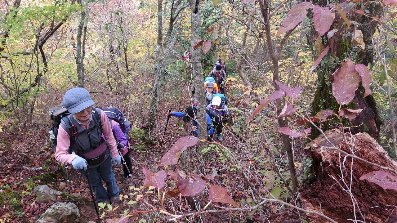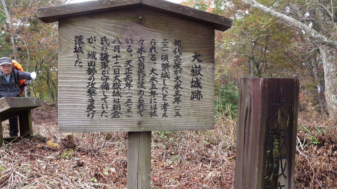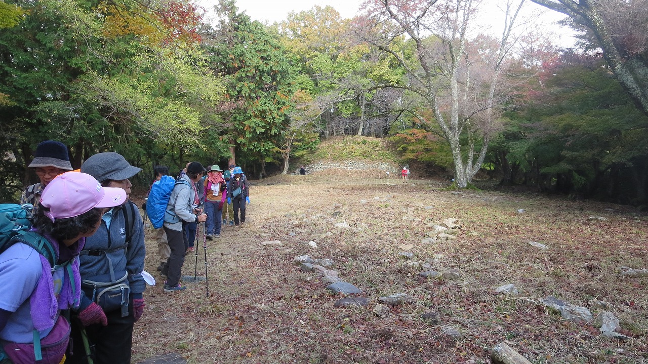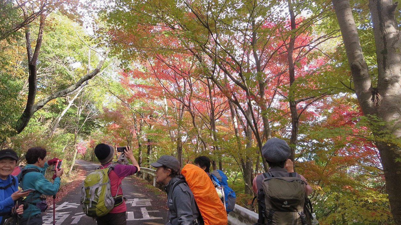 三日間の快晴を期待したがそうはいかなかった。反面、紅葉は期待通りで胸をなでおろした山行でした。一日目:「小谷山」は歴史の重みを感じる歩きでした。諸所に設置された本丸をはじめ多くの砦や曲輪跡などが丁寧に詳細に説明されていたことや歴史上の事実として映画や小説、TVなどでインプットされていたからかもしれません。そして多くの武士達が命を落とした地でもあります。