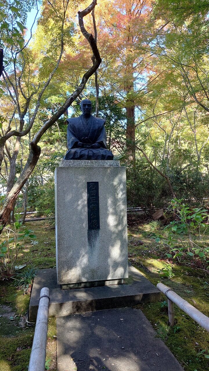 「がもう坂峠」から「龍潭寺」に向けて下りていくと境内に悲運の名将とも言われた・・?「石田三成像」がありました。