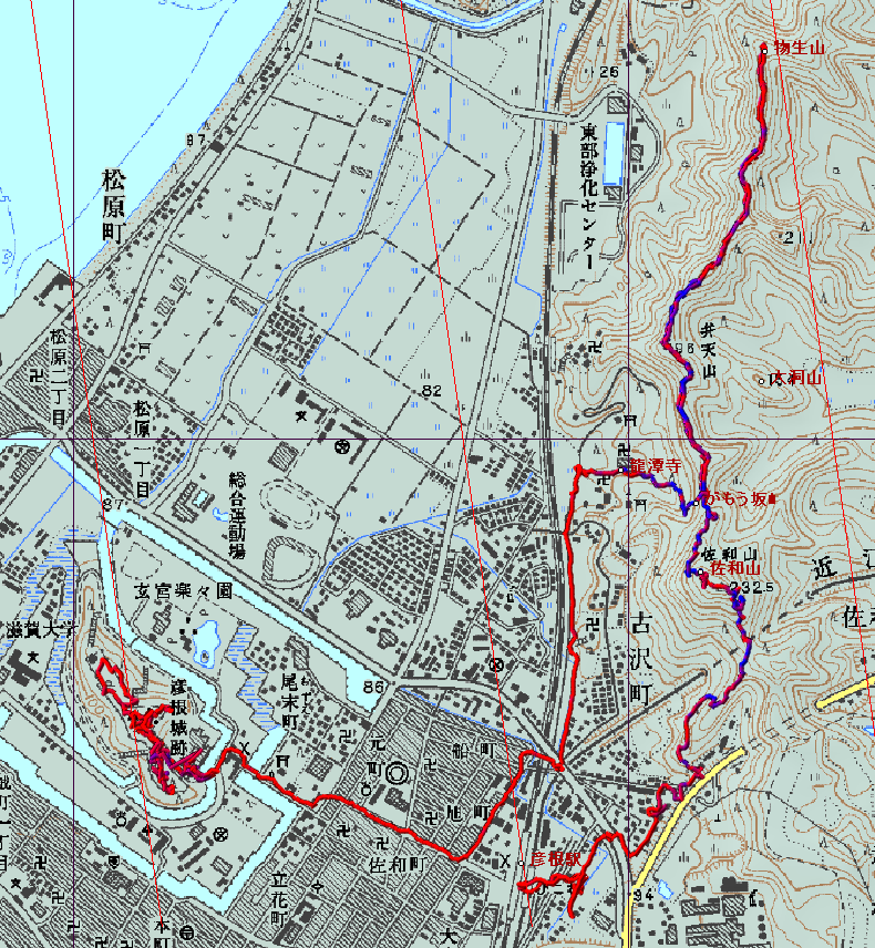 21日(火):4時間50分。彦根駅→佐和山→弁天山→物生山→がもう坂峠→龍潭寺→彦根城址→彦根駅