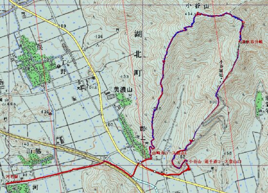 19日(日):3時間50分。河毛駅→登山口→小谷山→追手道コース登山口→河毛駅