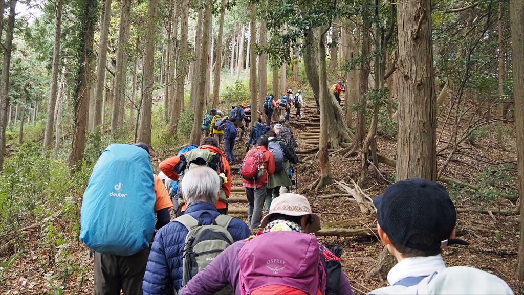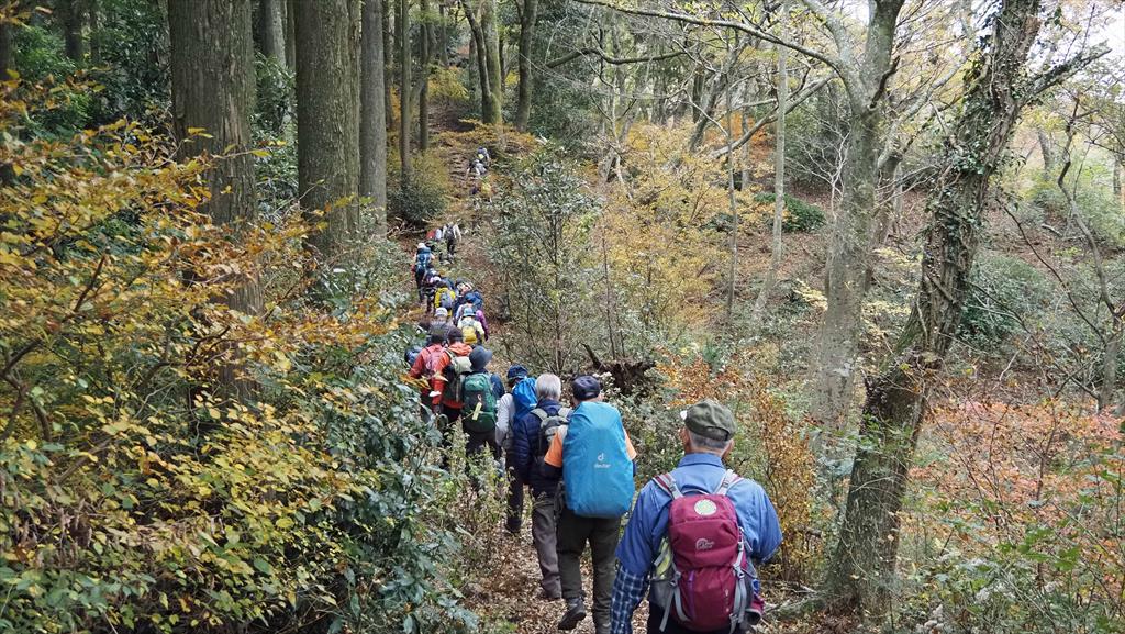 才戸入口バス停から大山古道(坂本道)のイヨリ峠(不動越え)~高取山~念仏山~吾妻山~鶴巻温泉駅まで歩きました。前日よりも気温が10°C近く下がり寒い中、大勢の人が集まり、また、皆さん、参加リーダー、サブリーダー及び協力者のお蔭で無事山行を終えることができ、ありがとうございました。中嶋要一