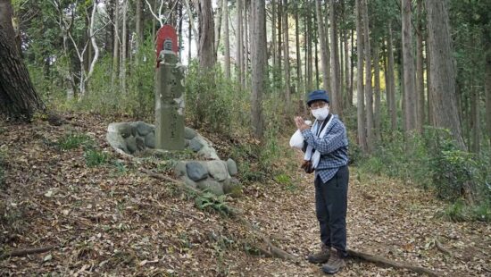 祠のなかに「右大山道の道標」。1820年供養塔として建てられたという。