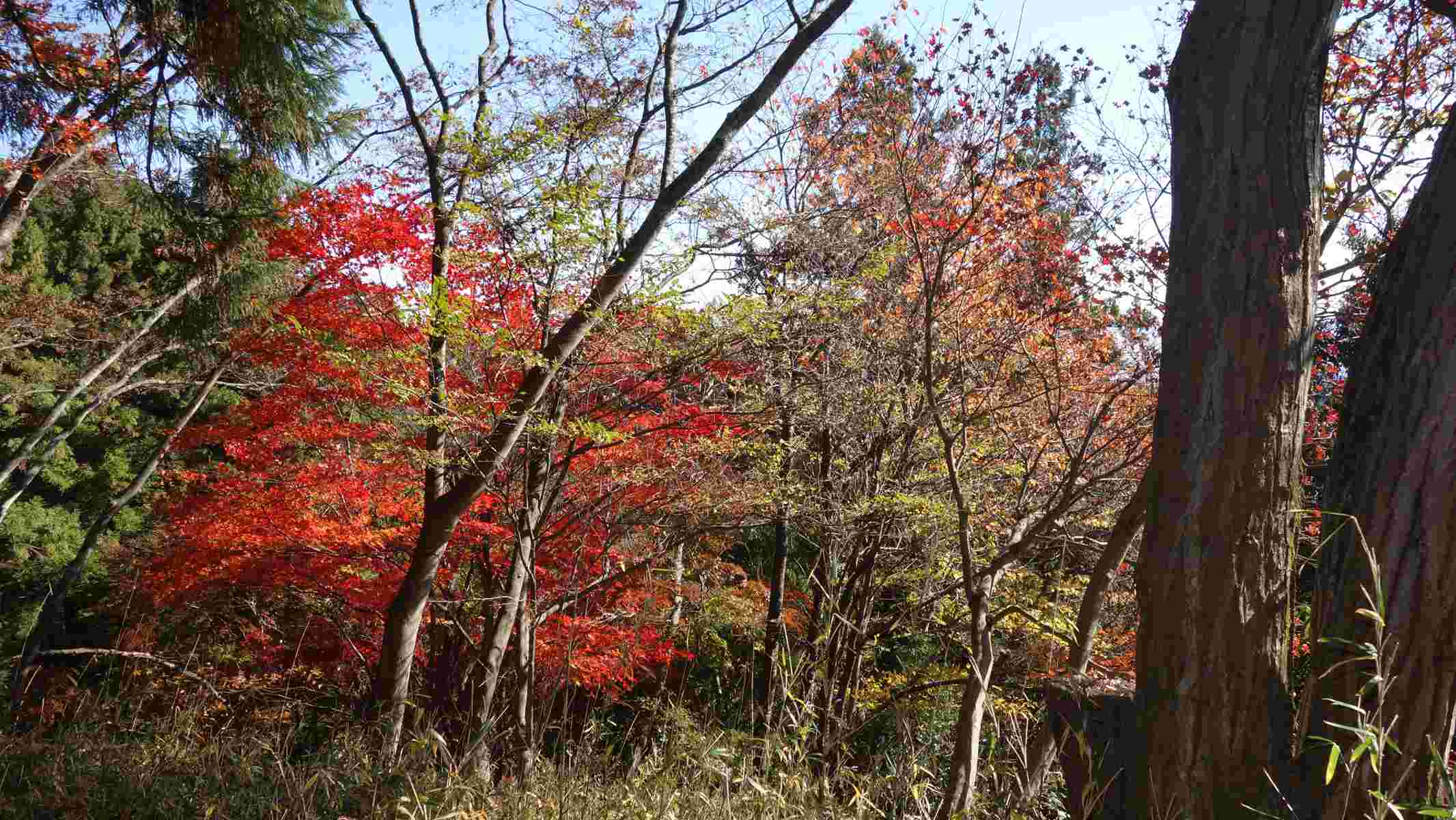 登山途中、木々がきれいに色付いていたので東郷公園の紅葉に期待しつつ、子の権現で昼食を取り東郷公園に向かう。東郷公園の紅葉は期待どうりで、ワー綺麗、最高などの声があちこちで聞こえた。