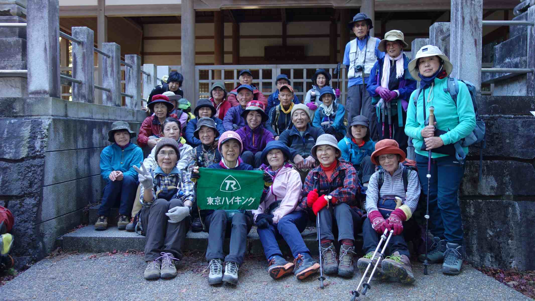 神社前で集合写真