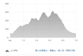 ▼コース :御門橋バス停09:20→10:30秋葉山→10:45高取山→華厳山11:30(昼食~12:00)→12:40経ヶ岳→14:00半僧坊バス停(解散)=本厚木駅