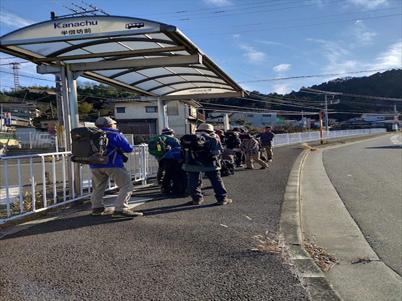 御門橋バス停でリーダー挨拶の後、登山開始。