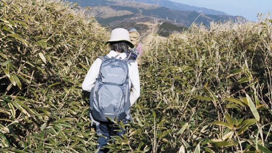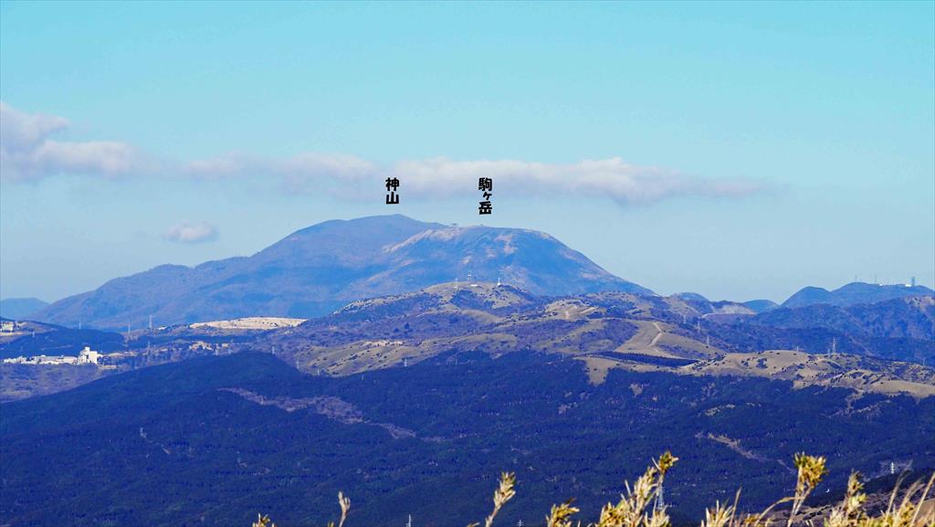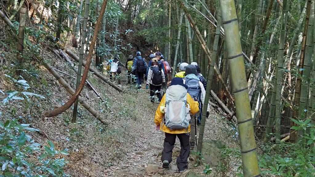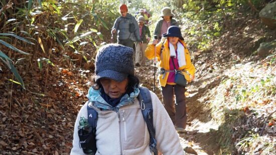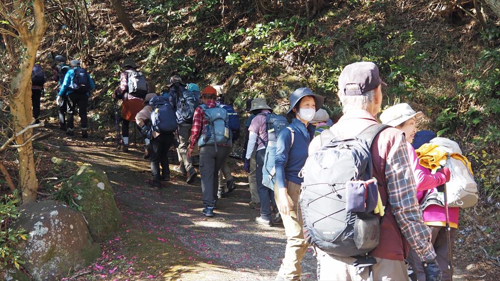 バス停から舗装道路の急坂を行くと登山口へ、冬枯れの路を進むと熱海市街や初島が眼下にひろがる展望地に 氷ケ池の分岐を過ぎると笹やぶの滑りやすい急登、頂上は360°のパノラマの絶景です。