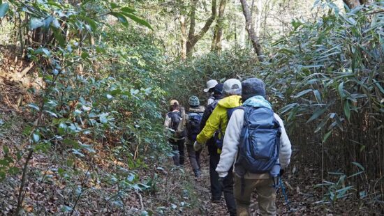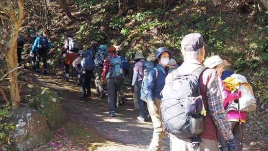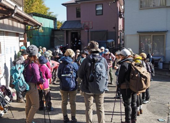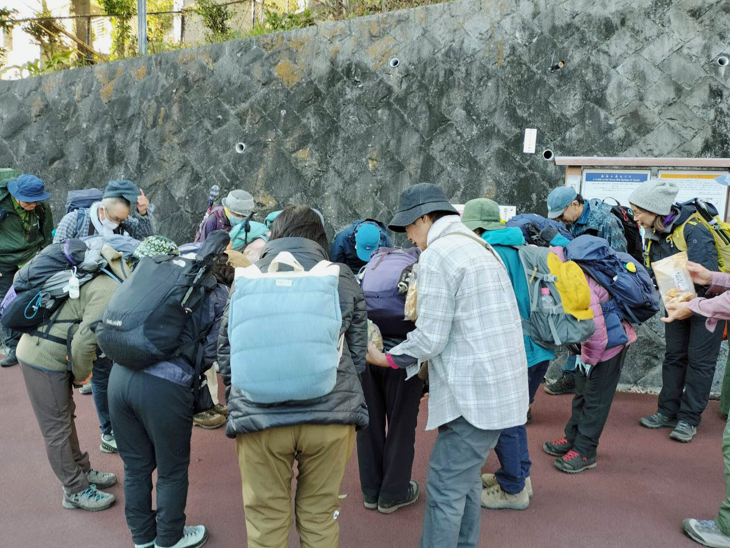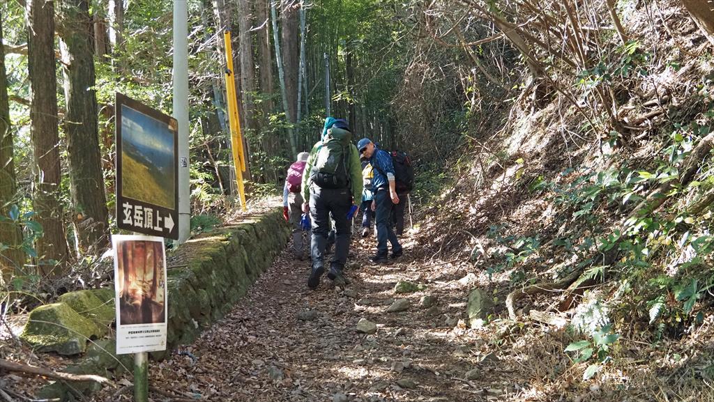 玄岳ハイクコース入口下車。しばらく歩き和田町公民館前の駐車場でリーダー挨拶。リーダー、サブリーダー等紹介。今日のコース説明。