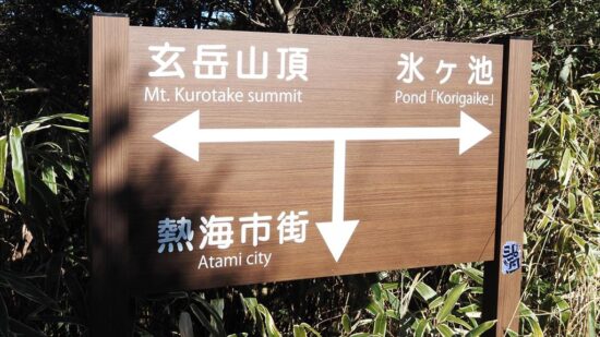 玄岳ハイクコース入口下車すると上図の案内板 ※青い文章をクリックすると熱海ソト歩きマップ『玄岳』パンフレットにリンクします。