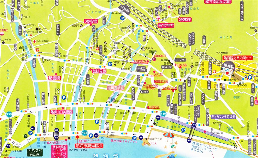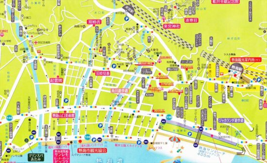 赤い下線が熱海七湯です。大湯間欠泉、河原の湯、佐治郎の湯・目の湯、清左衛門の湯、風呂の湯、小沢の湯・平左衛門の湯、野中の湯です。
