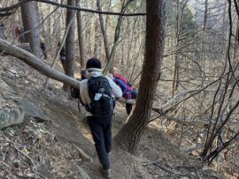 岩場も有り、道が乾燥で滑りやすくなっている箇所も有ります。
