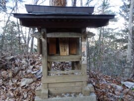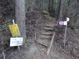 登山道入口、男坂・女坂ルートと沢コースの分岐です。