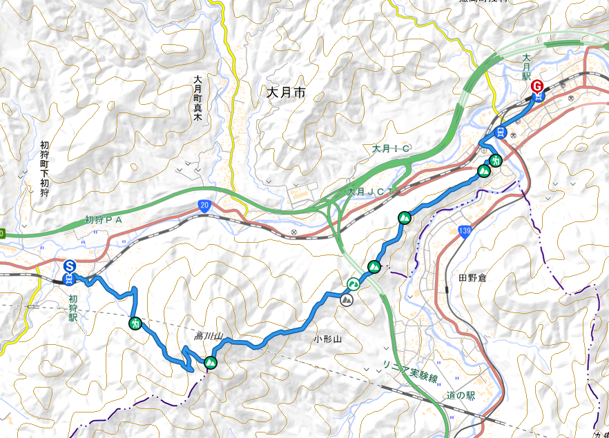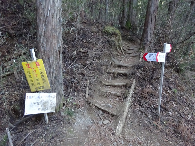 ▼コース : 初狩駅 9:10→登山道入口9:40 → 高川山11:00(昼食~11:30)→