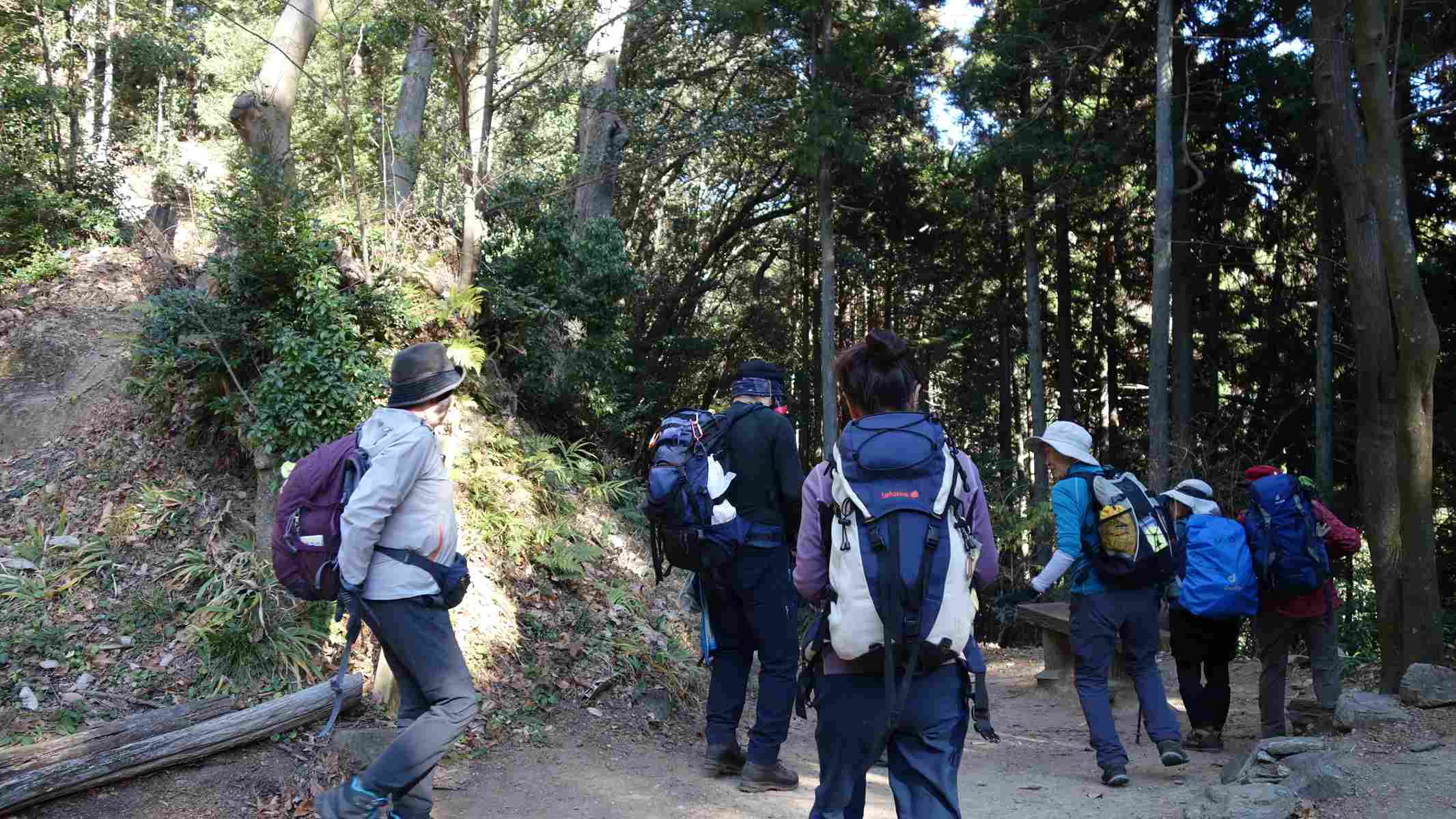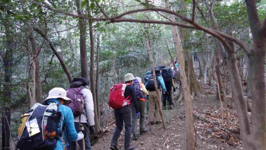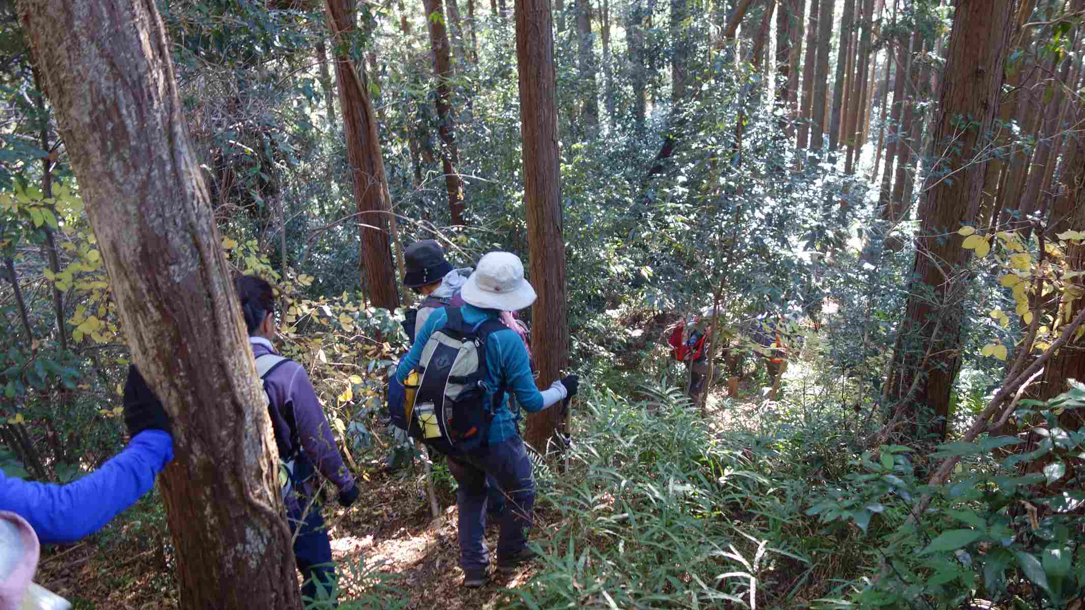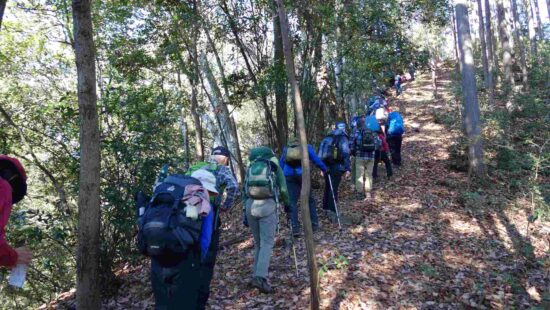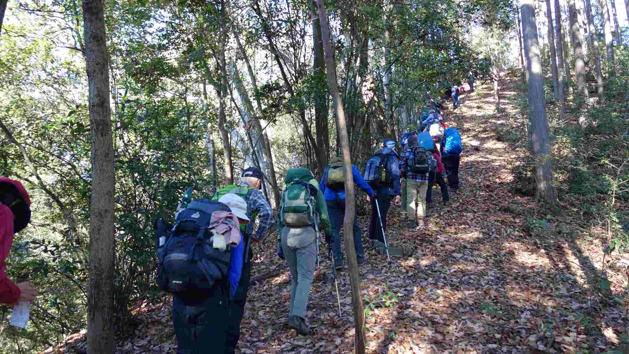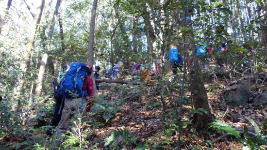 滑りやすい急な登りです。皆さん苦労していました
