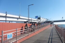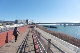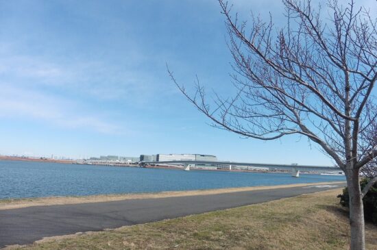 ソラムナード羽田緑地は多摩川スカイブリッジから羽田空港の離発着を見ながら水辺を歩きました。