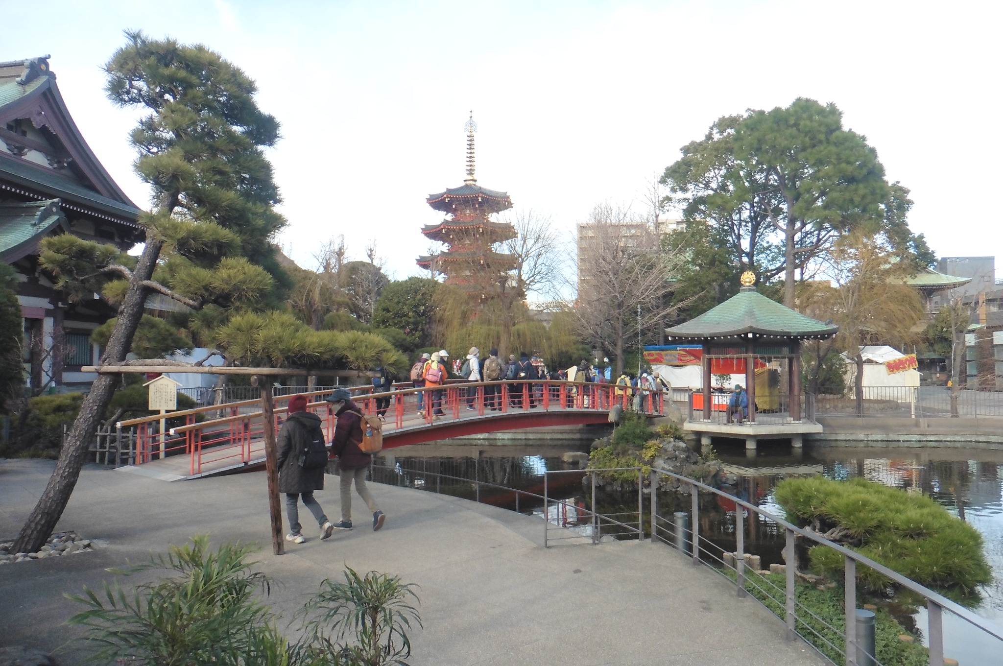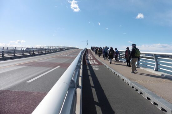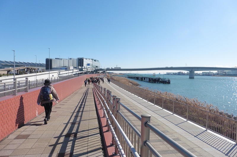 京浜急行空港線天空橋駅(10:30)→ソラムナード羽田緑地→多摩川スカイブリッジ(10:57)→殿町第二公園(11:40~12:30)昼食・ストレッチ→大師公園・瀋秀園(中国庭園)→川崎大師(14:15)解散→京浜急行大師線川崎大師駅(14:40)