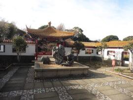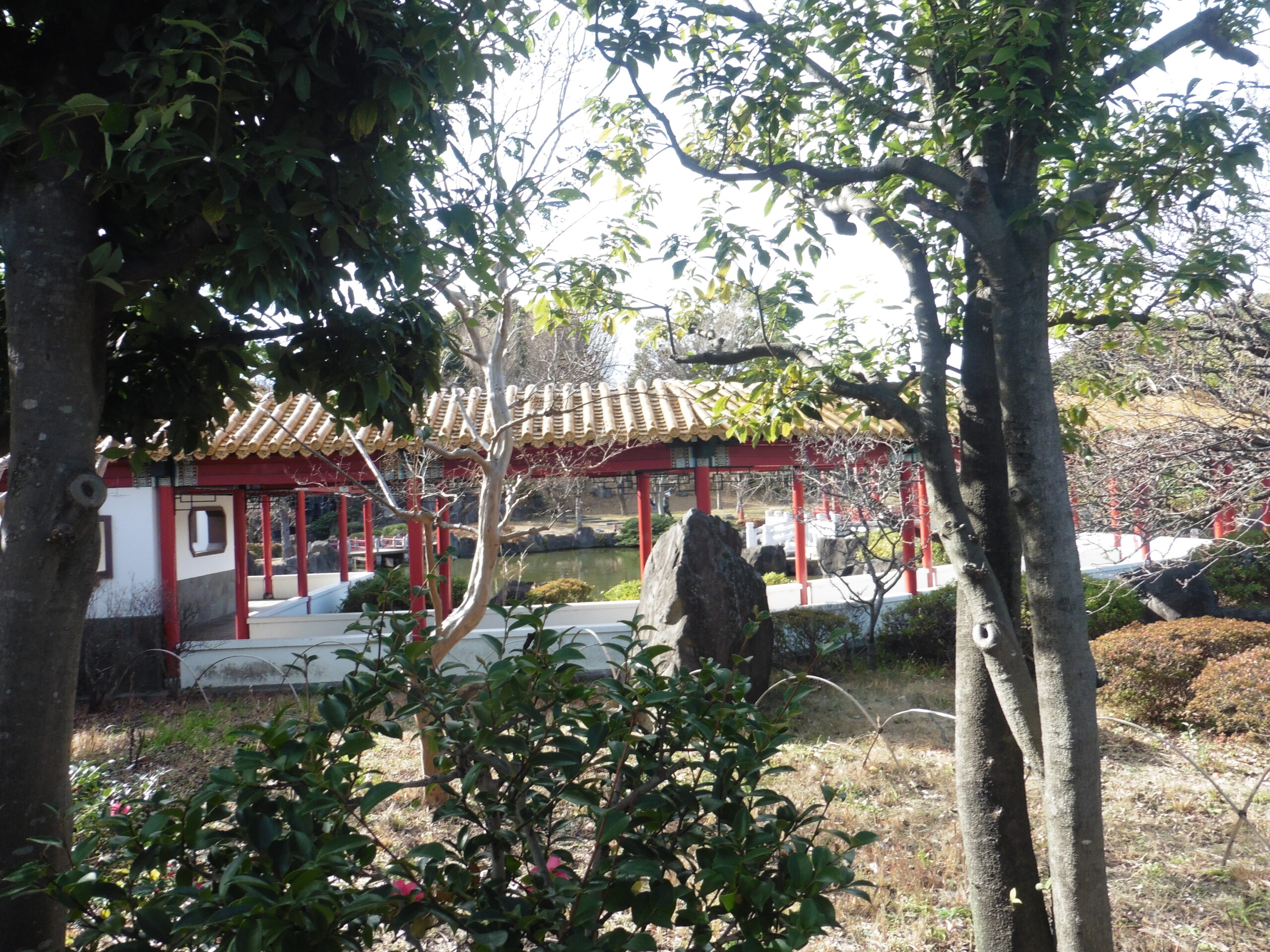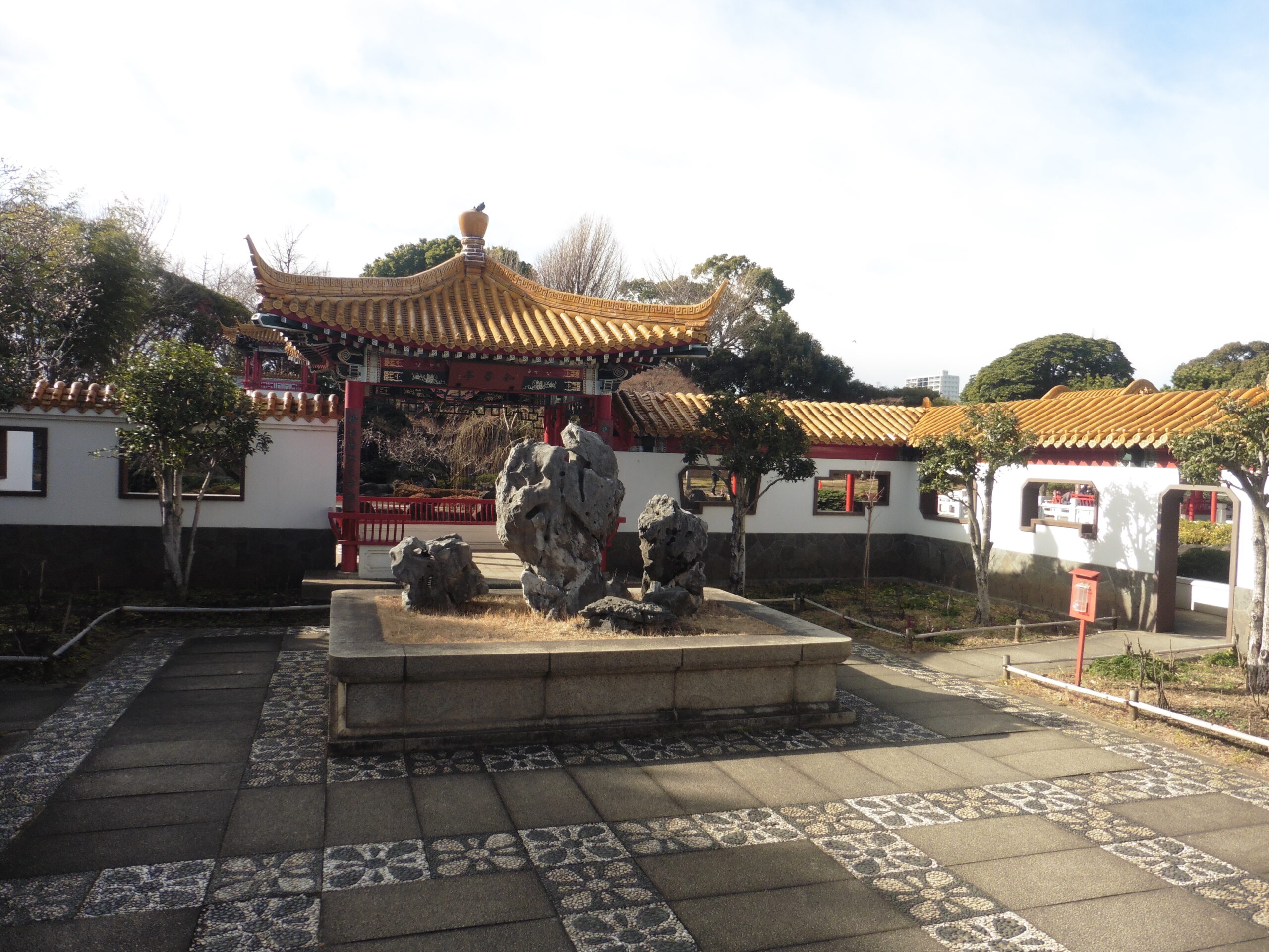 中国庭園「瀋秀園」は中国の瀋陽市と川崎市の姉妹都市提携5周年を記念して造られた中国式自然山水庭園で、中国建築を回遊しながら楽しむことができます。