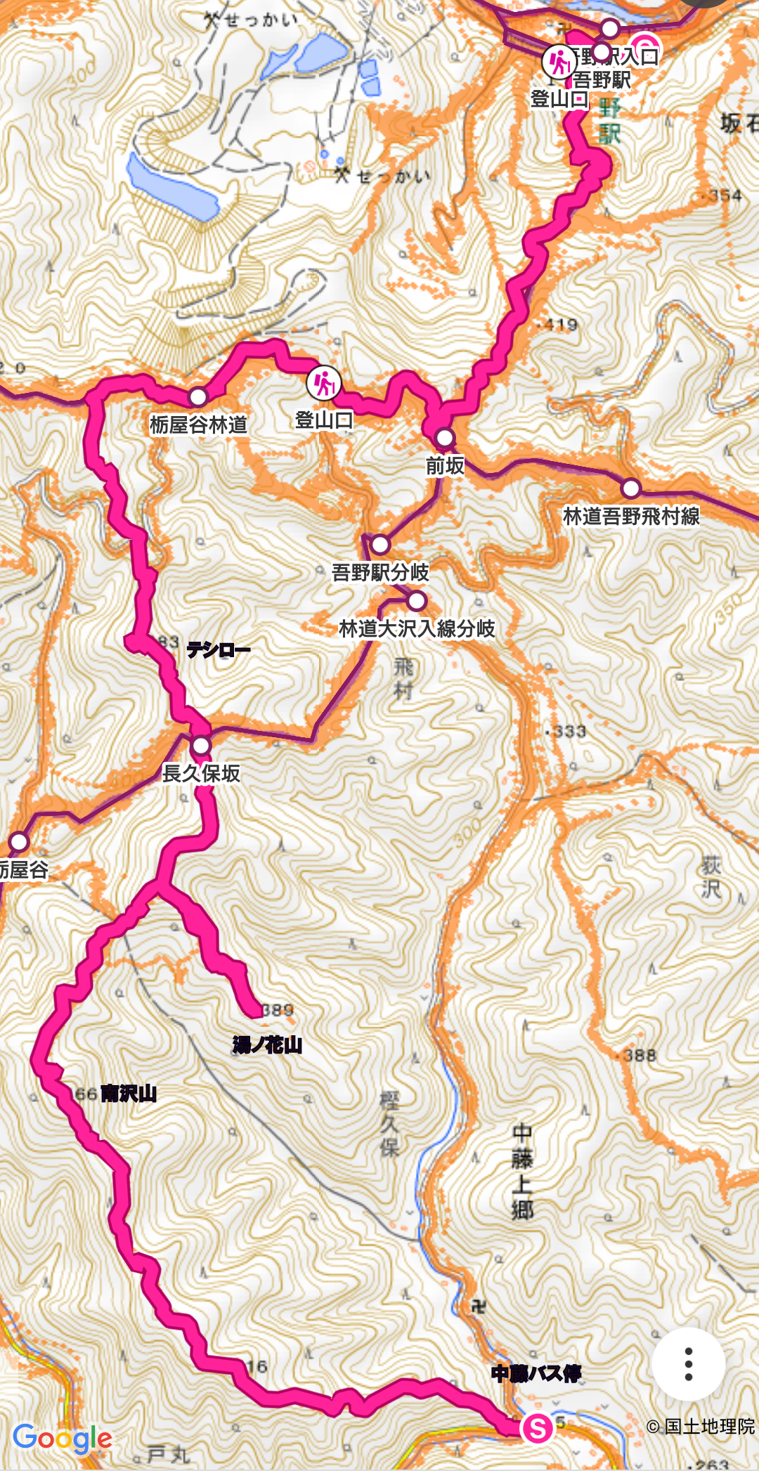 コース :飯能駅8:20-(バス)-8:50中藤9:00-10:00南沢山10:05ー10:43