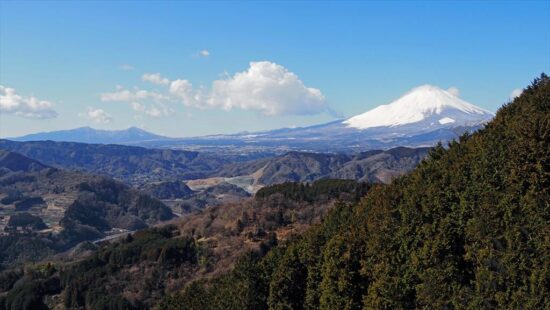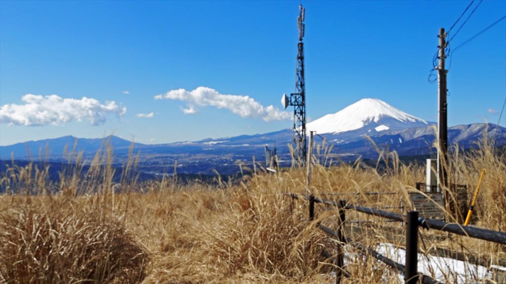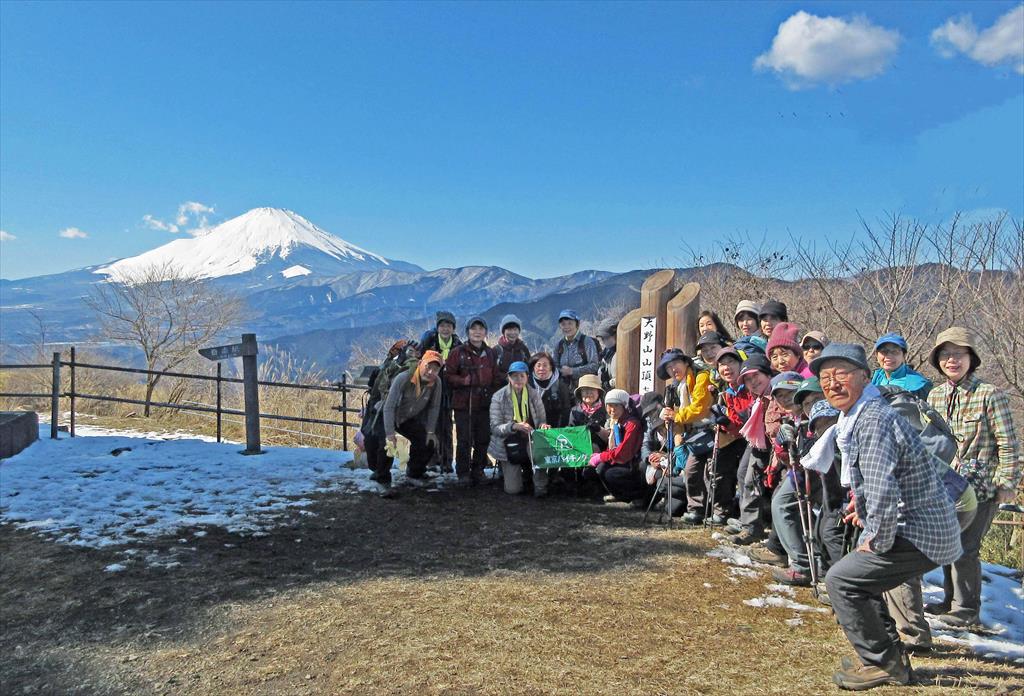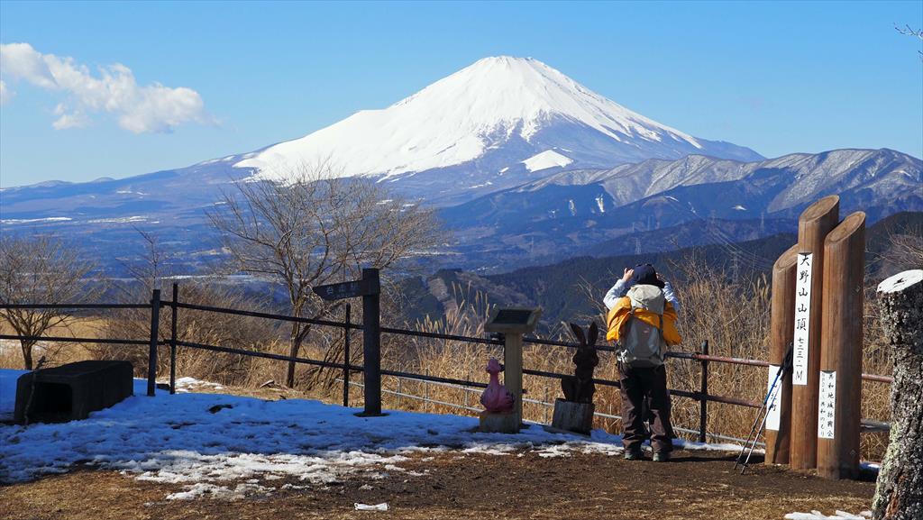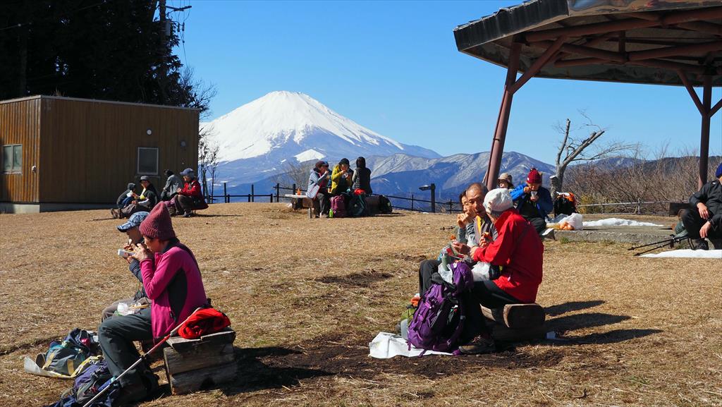 大野山山頂。わずかに、かかっていた雲もとれ、富士山の絶好の展望台になった。