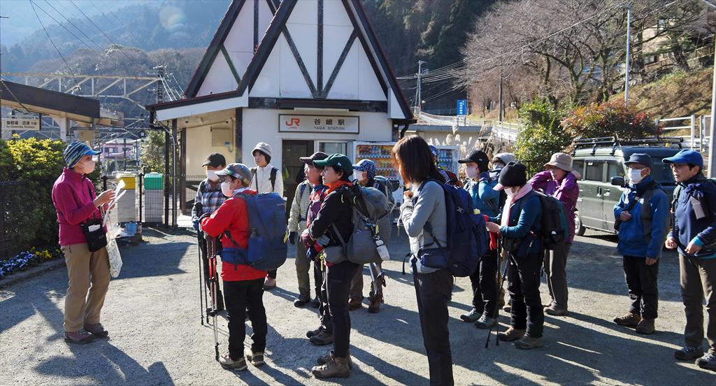 大野山へのアクセスには御殿場線山北駅と谷峨駅からのコースがあるが 今回は雄大な富士を眺めながら登る谷峨駅からのスタートです。駅前の数本の河津桜は三分咲き?