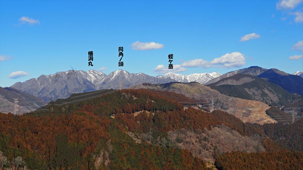 北側がアイスバーン。まっすぐ進と山頂に到着。丹沢山塊は残雪。