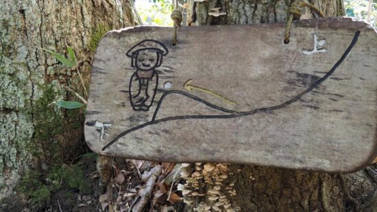 地蔵様の所でたっぷりの休憩を取り廃校の小学校にくだる、