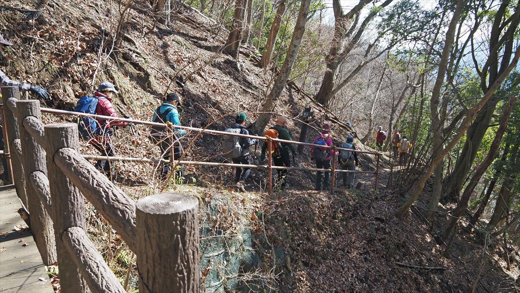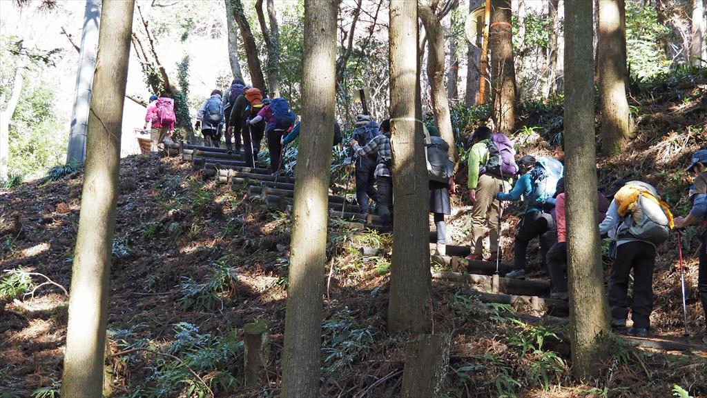 下山は地蔵岩コースで 急階段を降り、幅の狭い路 路肩が悪い下山道です。