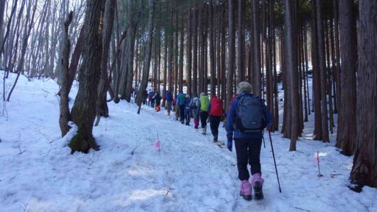 初めよければ終わり良しで白銀の中の山歩きで、冬の青い空と遠くの山々が墨絵の様な素晴らしい景色に感動し疲れも忘れた一日でした。膝丈までの雪の中を歩き秩父の山深さにふれ皆一緒に歩けた事に感謝です。リーダーはじめ協力者さんのサポートのお陰で楽しい山行でした!