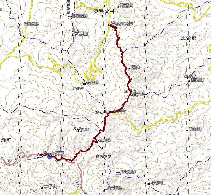▼コース:小川駅=皆谷バス停9:10→萩平T字路9:40→笠山11:00→笠山峠11:30→12:10堂平山(昼食)12:40→白石峠13:10→高篠峠14:00→大野峠15:00→16:30芦ヶ久保駅