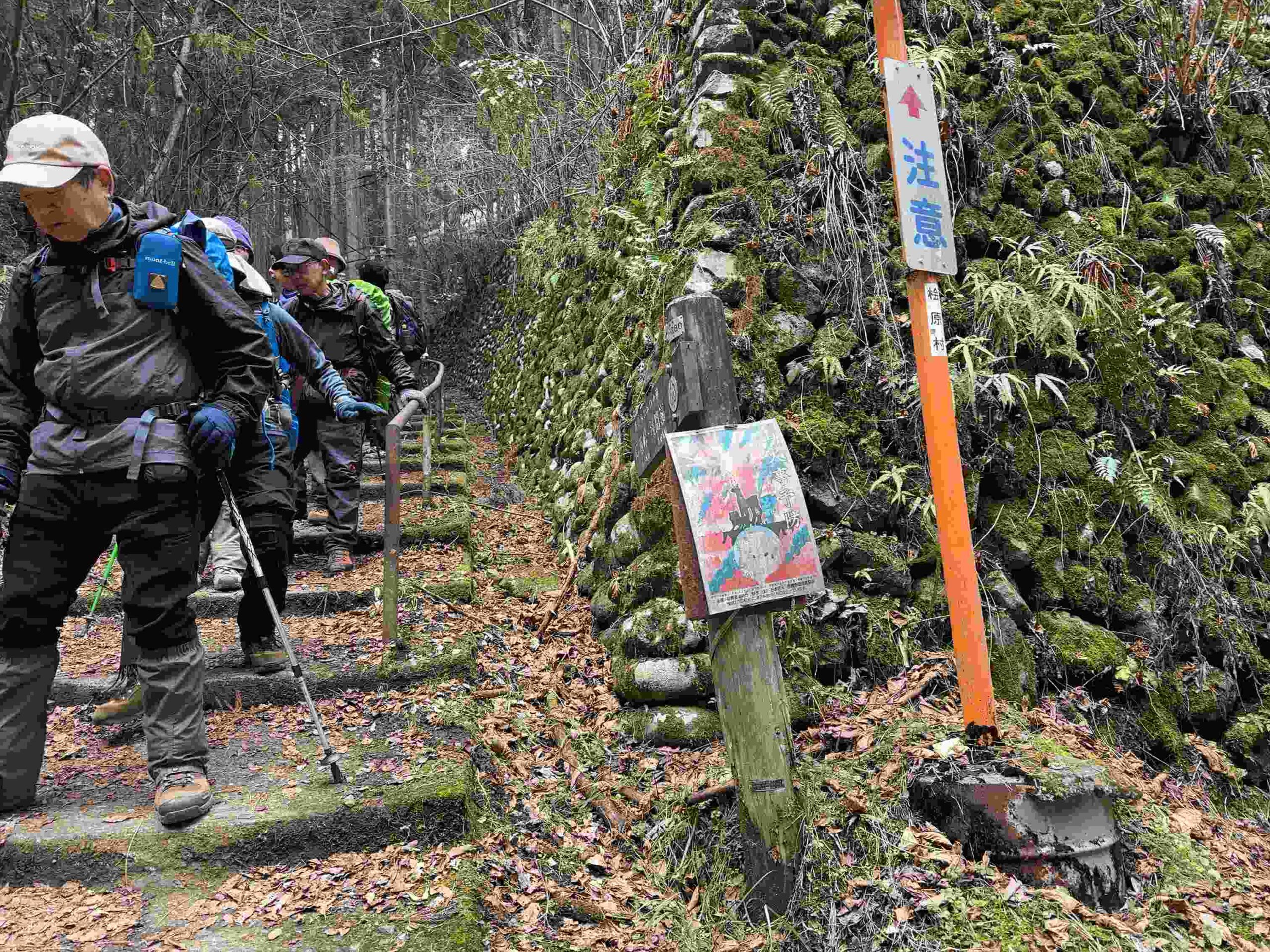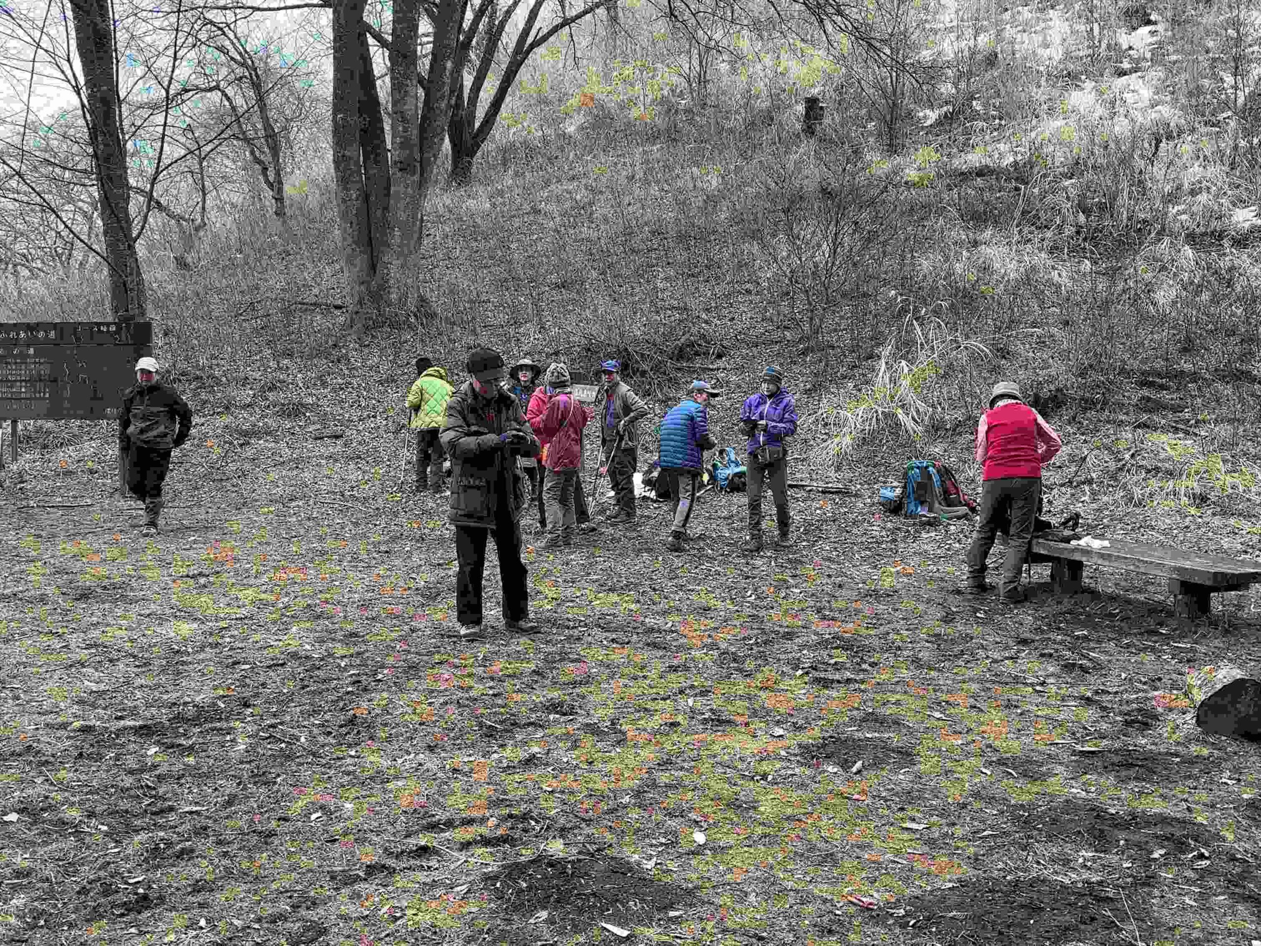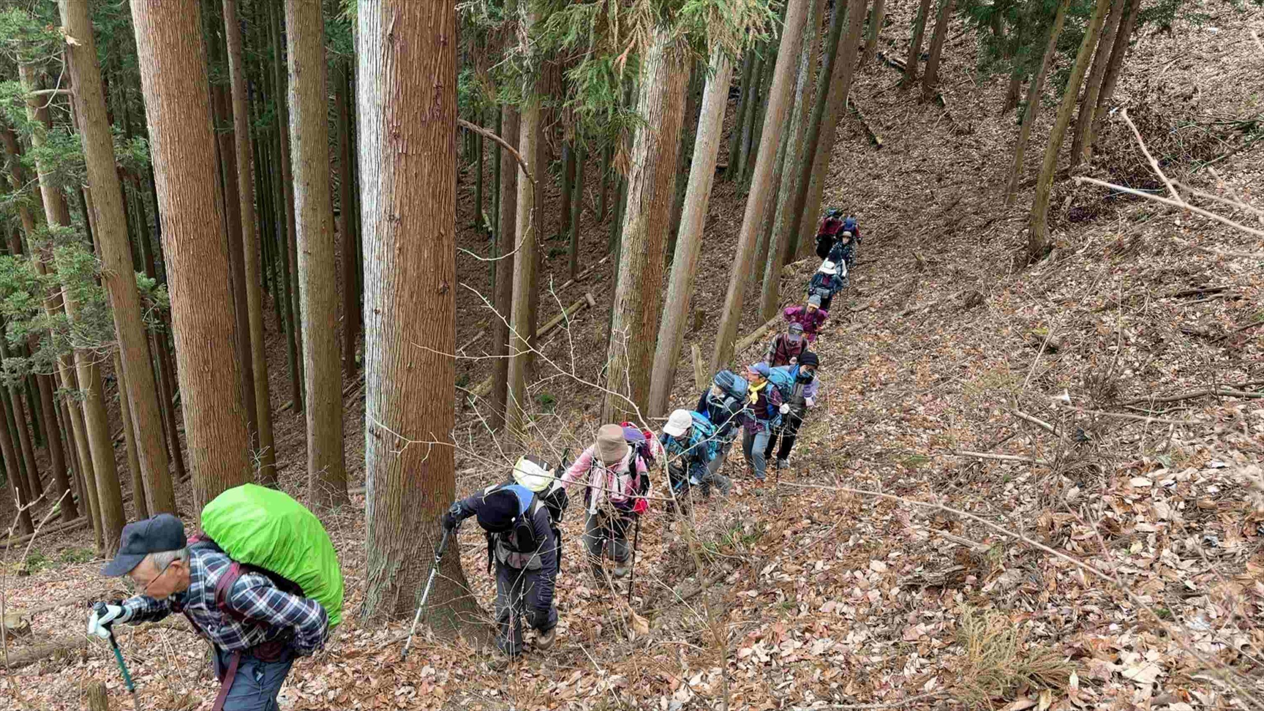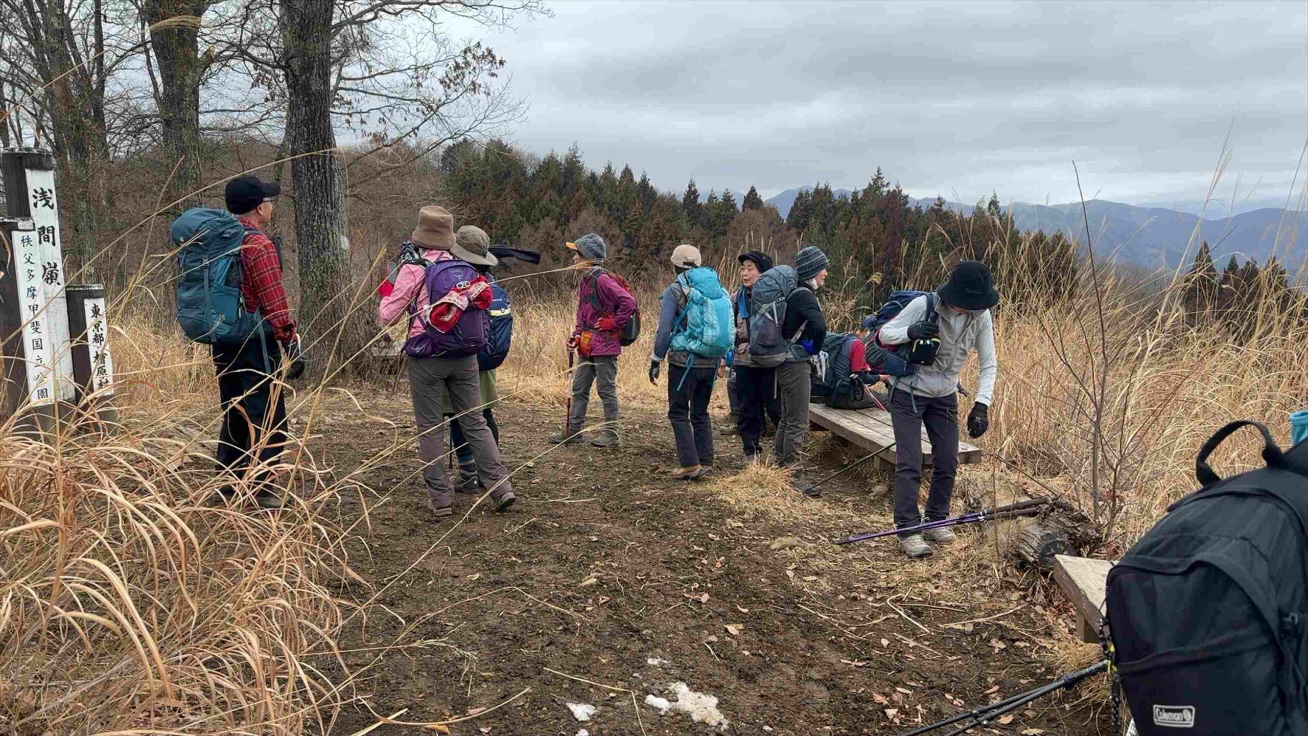 天気予報は日中は晴れる予報にもかかわらず、一日中曇り空の肌寒い天気でしたが、今回は急なアップダウンのない穏やかな登山道でしたので、のんびりと歩きましたが遅れる人もなく、予定より早めに下山することができました。
