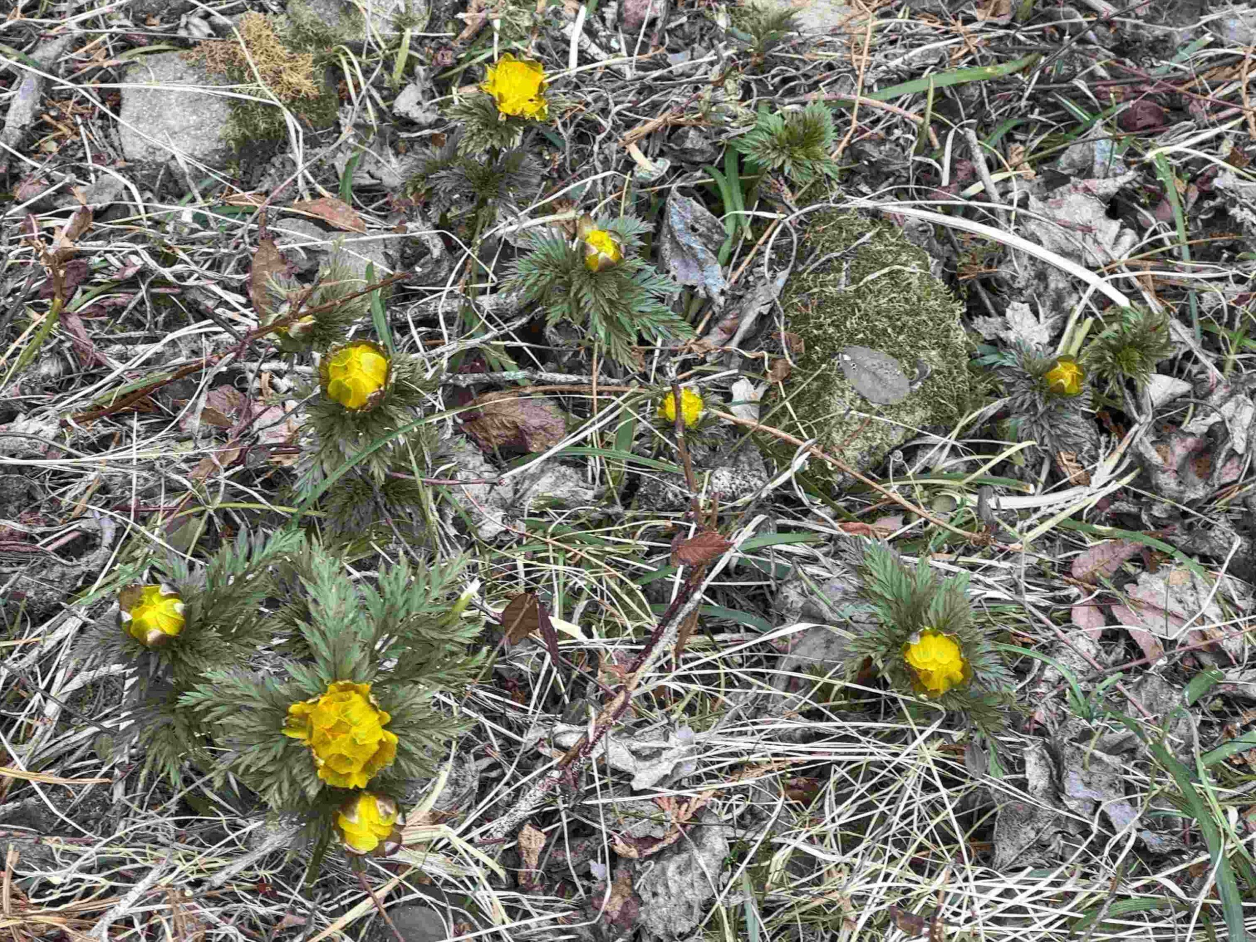 「浅間嶺」からの下山途中では樹木が伐採されて奥多摩の山々が見渡せる視界が広がった空間がしばらく続き、雄大な展望を眺めることができました。また、時坂峠の先の民家の裏手には「福寿草」の群生地があり、まだ、蕾の状態でこれから花が開こうという福寿草を見ることができました。