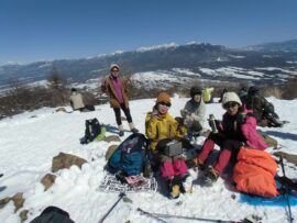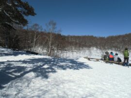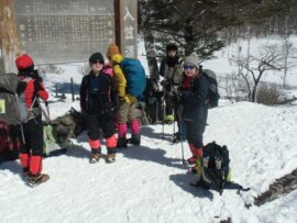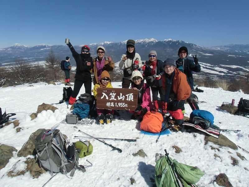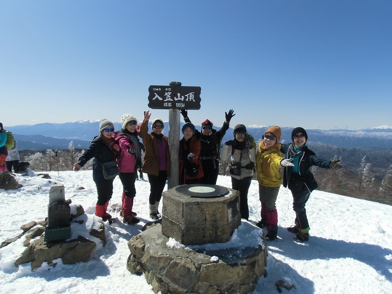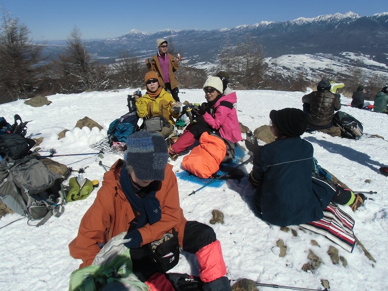 素晴らしい一日でした。この一言に尽きます。無風、快晴の中、数日前に降った新雪を踏んでの入笠山山行。山頂は360°(八ヶ岳・中央アルプス・御嶽 乗鞍・北アルプス)の眺望!途中の斜面ではグリセードならぬ尻セードで楽しんだり、山頂でのランチタイムは無風、快晴の中ゆったりとした時間を過ごしました。9人皆さんの協力があっての山行でした。ありがとうございました。