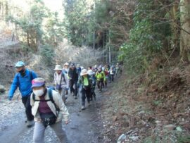 ▼コース:高尾山駅9:32=日影バス停下車→日影沢林道→キャンプ場(集合)→逆川登山分岐→キャンプ 場→蛇滝梅林 梅まつり会場(12:00~13:00)→西浅川遊歩道→天神梅林→高尾駅14:20 解散