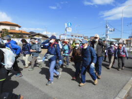 昭島駅前、参加者皆さんからの「おかえりなさい」!リーダー感激・・・今日のコース、車道歩きが長いので注意を心掛け、コースの説明くをする!