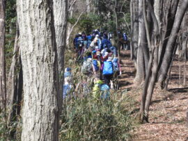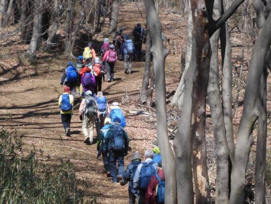 昭島駅からハイキングコース入口まで1時間程、車道歩きになりますが5ケ月半ぶりに歩く私にとっては良いリハビリになりました。時折吹く風が冷たく感じましたが、車道離れると春の日差しが、心地よく楽しく歩けました。暫く振りの山行で緊張しましたが、協力者、参加リーダー、参加の皆様に助けて頂き無事に山行を終えました。どうも有り難うございました。