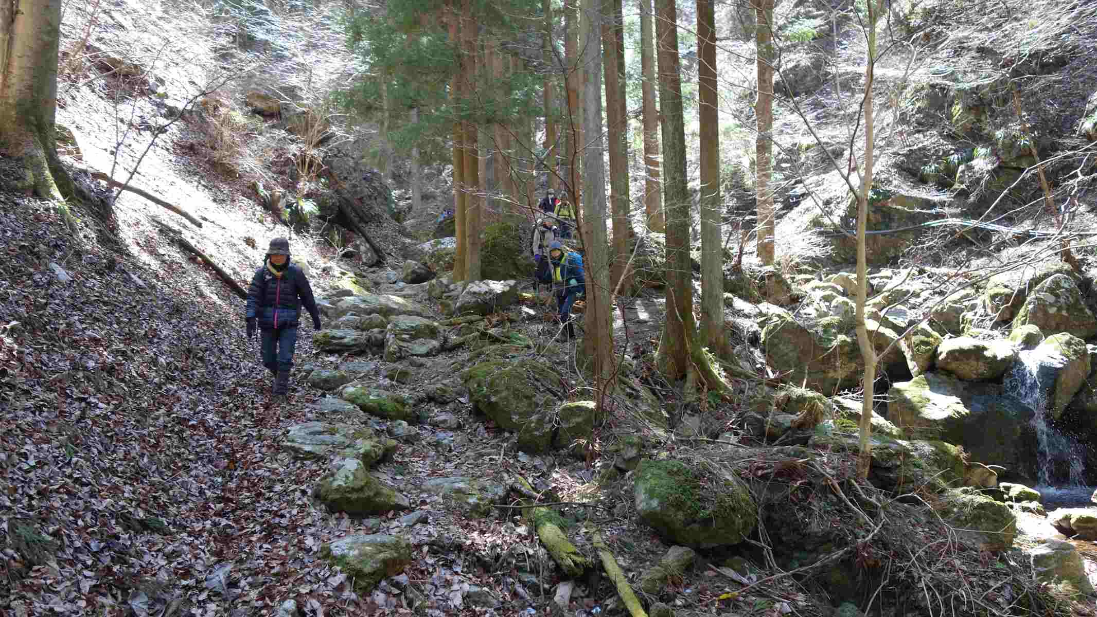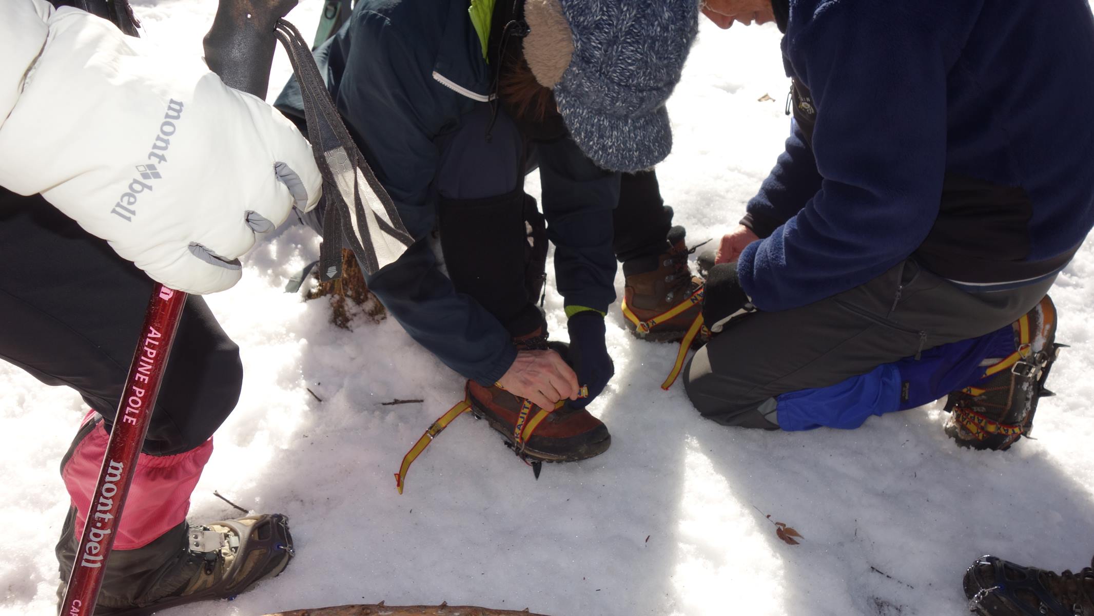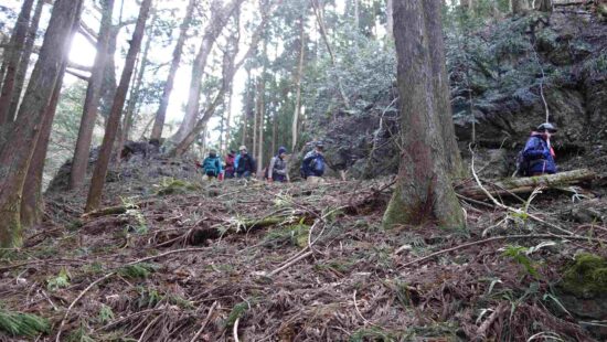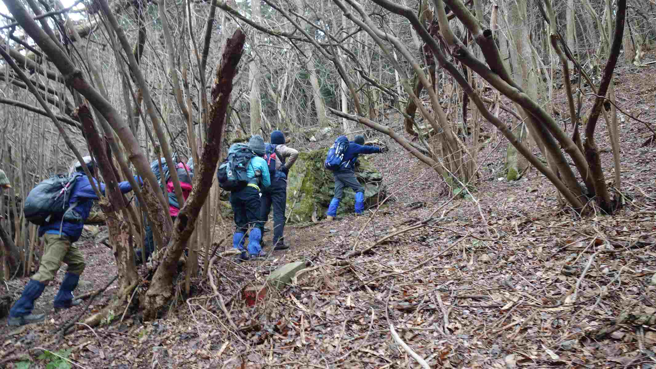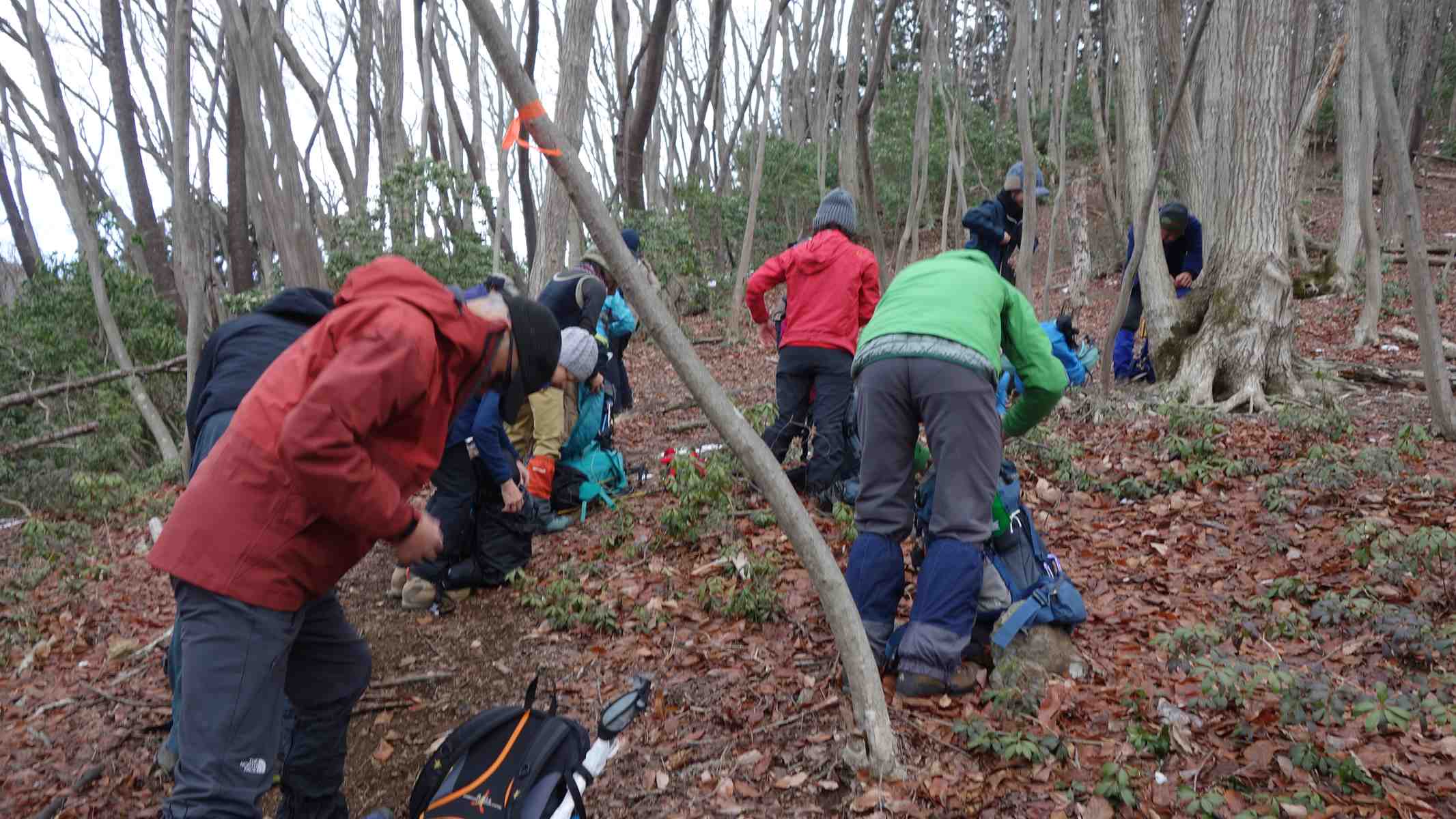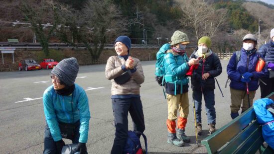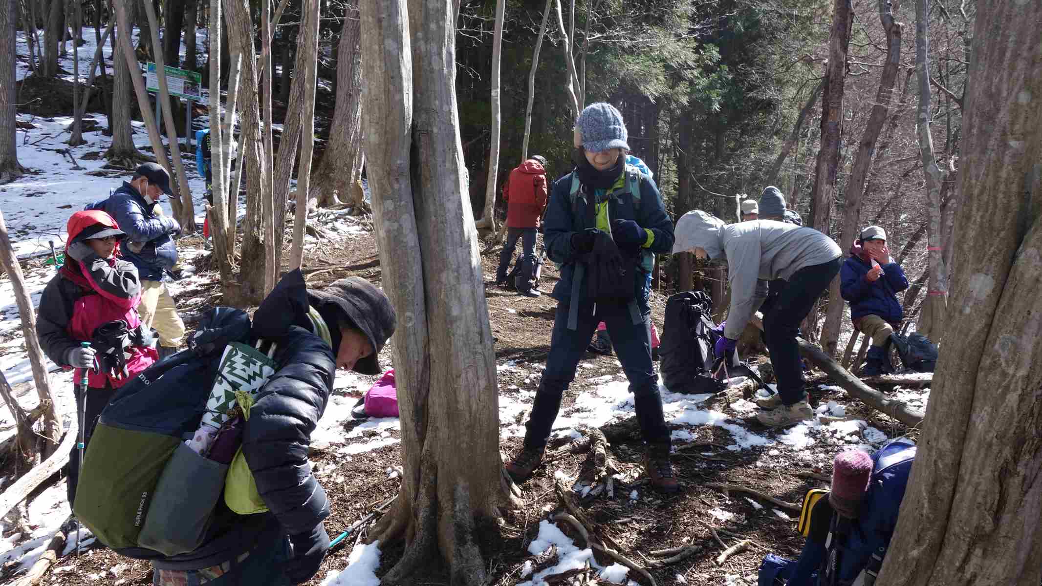 集合場所の芦ヶ久保駅には、18名もの健脚自慢の方々がそろっており、挨拶とコース説明後、天気も良く風も穏かな中元気にスタートする。岩菅山につき尾根道に出ると冷たい北風に一気に体温を奪れ不安であった登山情報を思い出す。二子山山頂の手前でアイゼンを装着しロープのある急登を、皆元気に登るも北風益々強くなり、登山情報の説明をする。二子山から武川岳までは北向の尾根道であり風速14㎧の北風をまともに受けての3時間の歩行は、危険と判断し下山することにしました。健脚の皆さんには不完全燃焼な山行で終わった事お詫びいたします。自然の脅威には勝てない!!! 星 富士夫