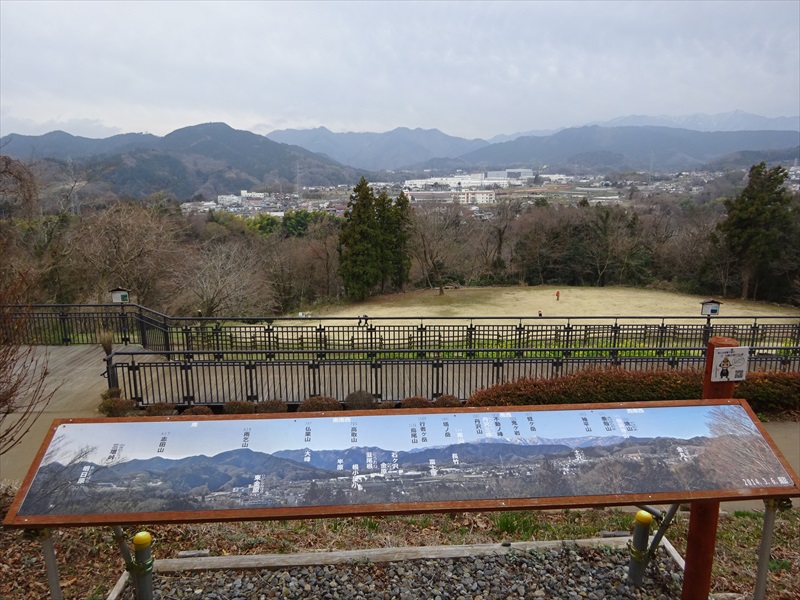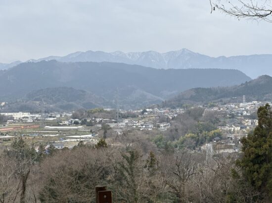 展望広場からの丹沢の山並。丹沢山塊最高峰の蛭ヶ岳を始め、鬼ヶ岩、丹沢山がはっきり観えました。まだ、雪が残っているのがわかります。