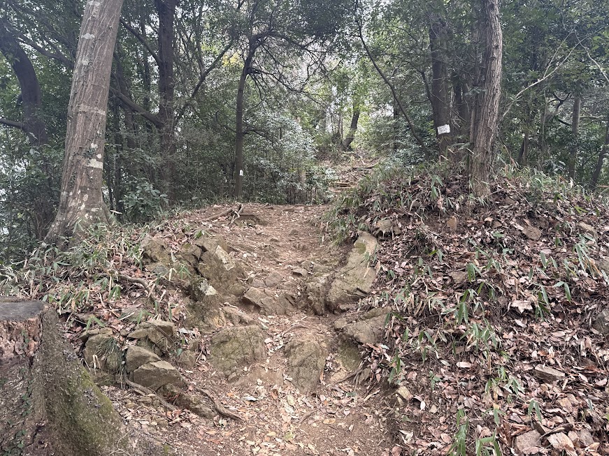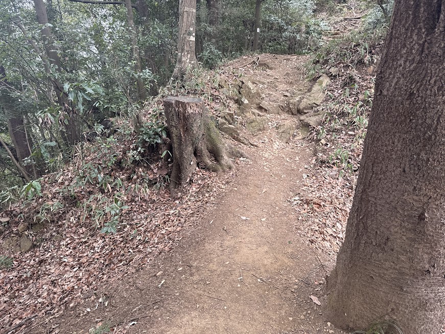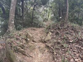 堀切は尾根を掘り込んで敵を防ぐ防御施設。戦国時代の遺構です。