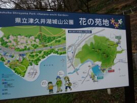 ▼コース : 橋本駅北口 9:17 = 津久井湖観光センター前 9:40 → 津久井城山 11:00 → 展望広場 11:40 ( ~昼食12:10 ) → パークセンター 12:30 → 花の苑地 13:00 → 水の苑地 13:40 → 城山高校前バス停 14:00 解散
