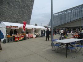 所沢市役所に昼食のための使用許可を申請し、決められた場所で昼食です。