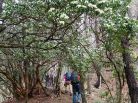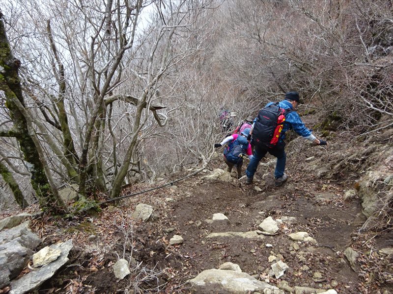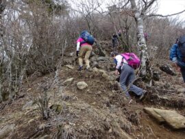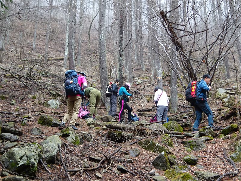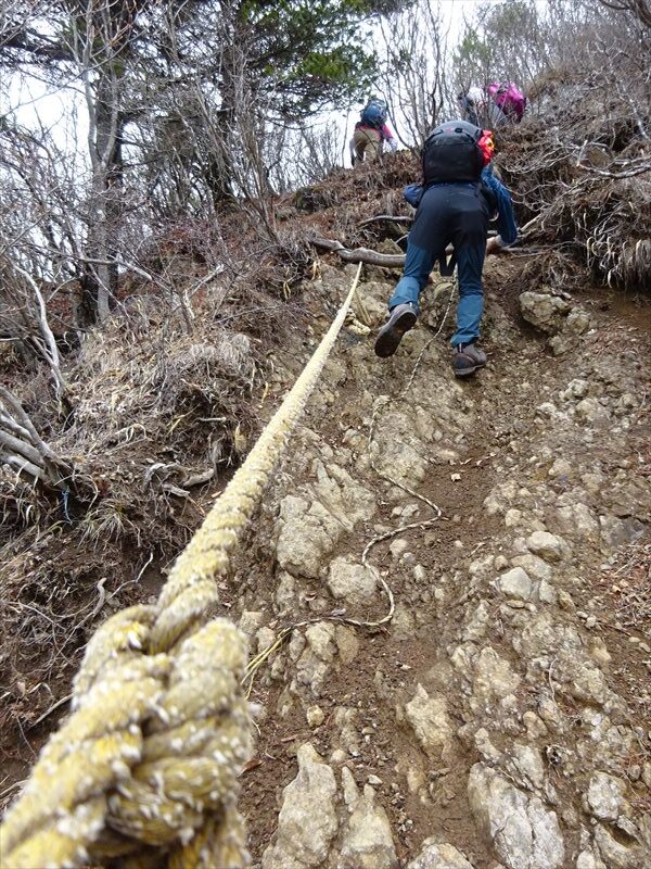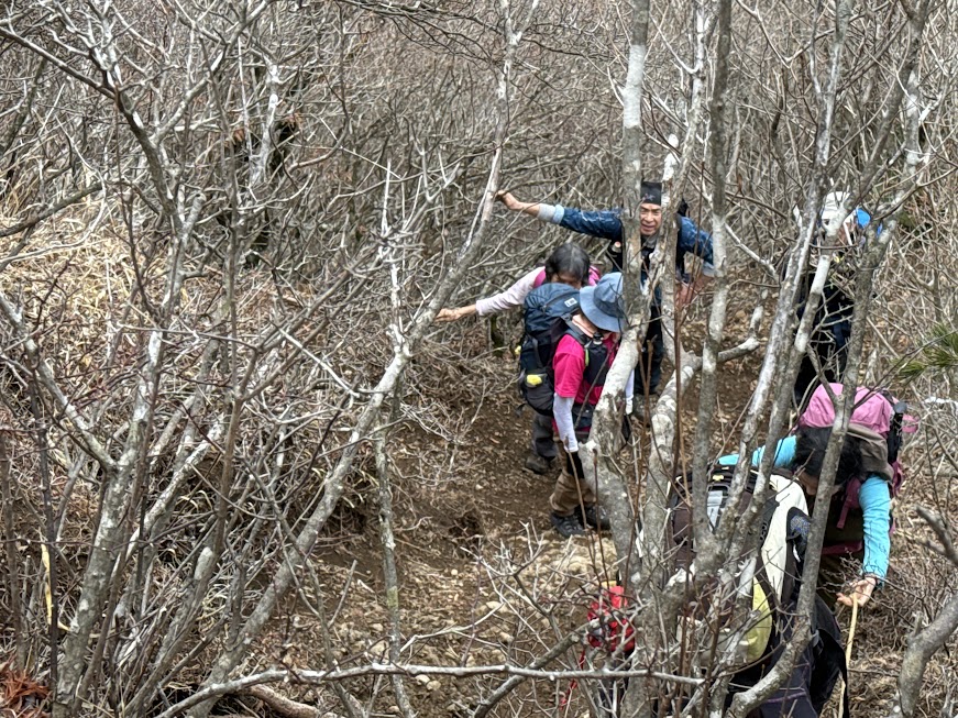 ロープが何箇所もあるような急な登りや下りが多いコースで、前日は雨ということでぬかるんで滑りやすい箇所もありましたが、どなたも怪我することなく、無事に山行を終えることができ、ホッとしています。いつもながら、参加リーダー、及び参加者の皆さんがよく協力してくださるおかげです。感謝申し上げます。一つ一つの山行を大事に行っていきたいと、思っていますので今後ともどうぞよろしくお願いいたします。